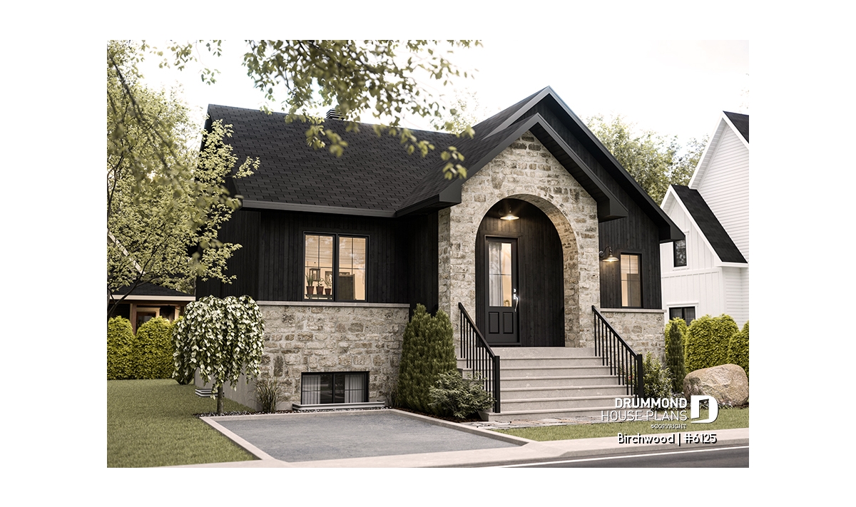 Pretty stone arch on the facade whose main purpose is to cover the front balcony while giving a beautiful style to the house.