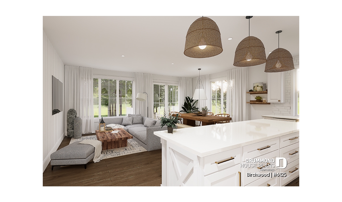 Open area to the kitchen area, dining room and living room.