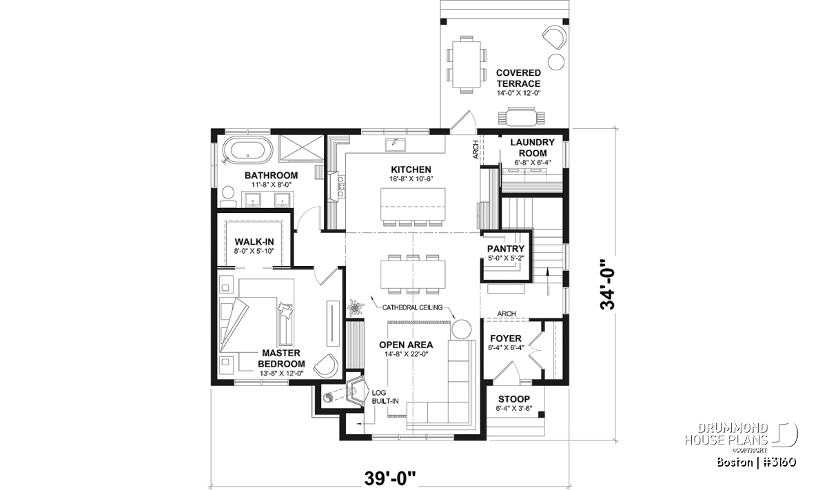 Split bedrooms, Gound floor laundry room, Cathedral ceiling, Ceiling over 8', Entrance hall, Open floor layout, Covered patios, Double sinks, Separate bath and shower, Pantry, Walk-in master bed., Fireplace, Shelves, Arch, Builder, Built-ins
