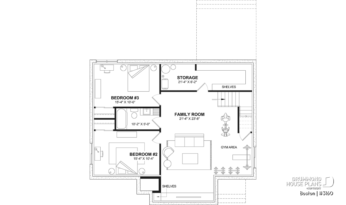 *If you wish to purchase the finished basement plan, as presented on this plan page, please select this option in the shopping cart, in the "Selection of foundation type" section. If you do not select this option, you will receive the unfinished full basement option, at no extra charge.