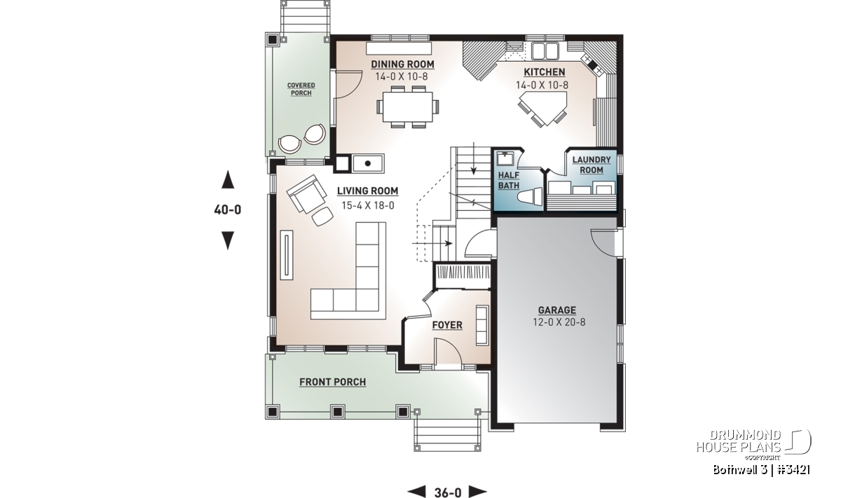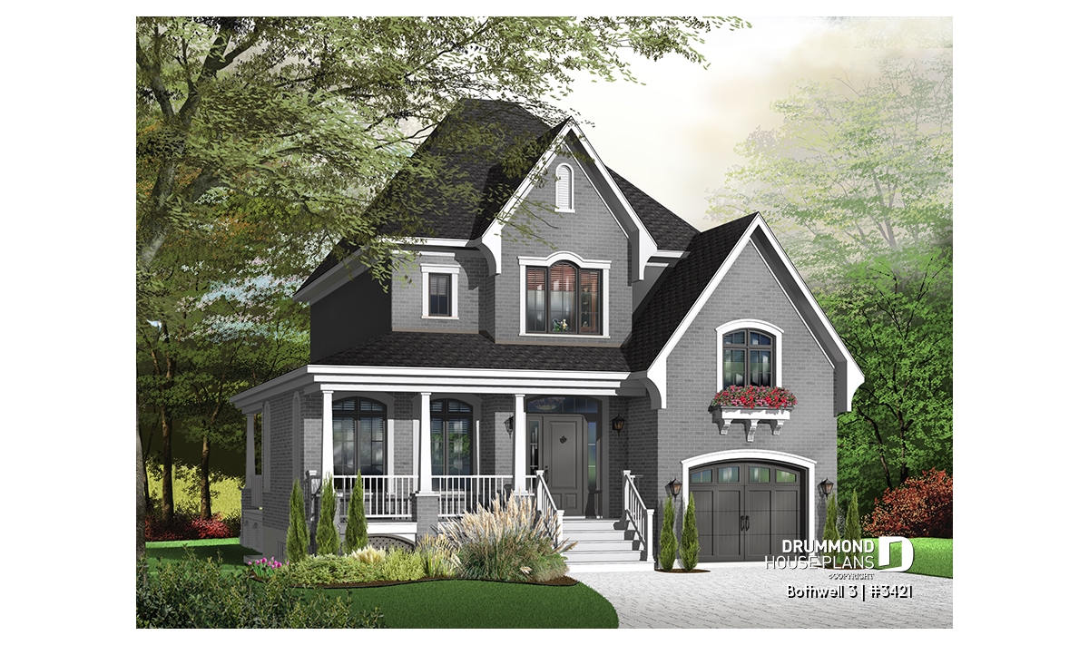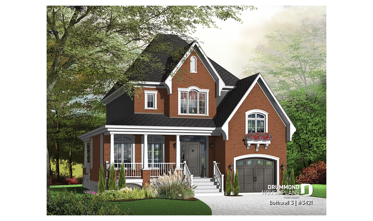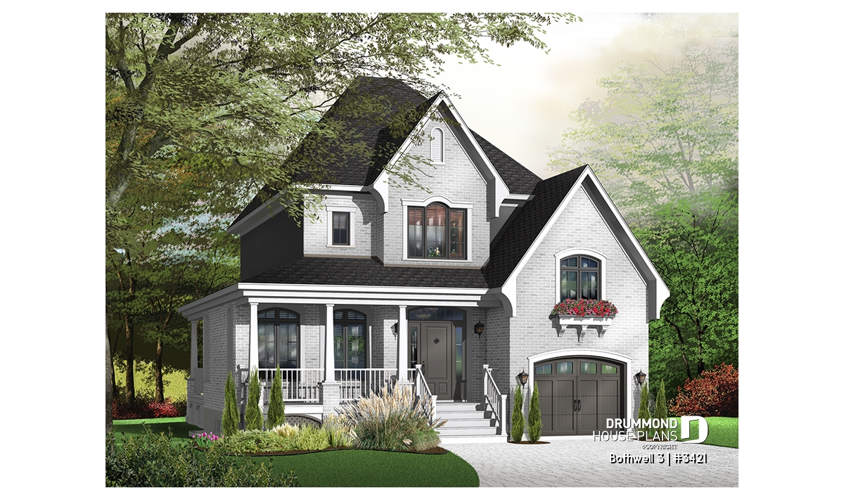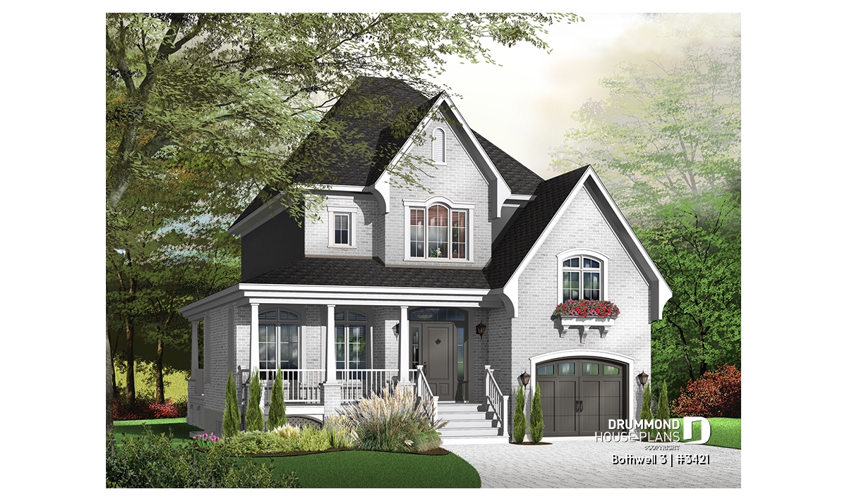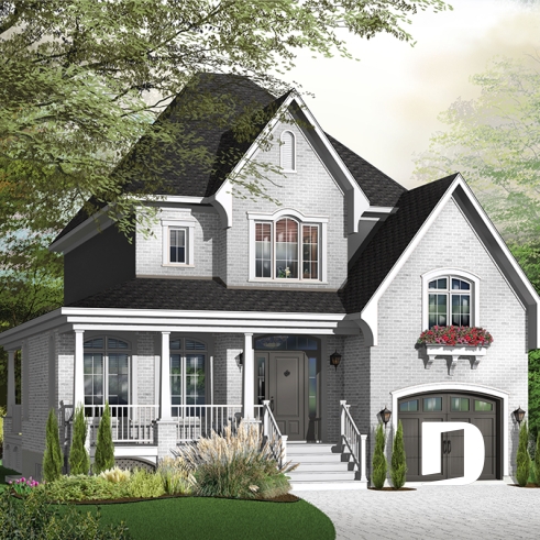 So, in addition to the lowered garage which simplifies things for builders, this cottage proposes two covered galleries, one at the front and the other at the rear attached to the dining room.