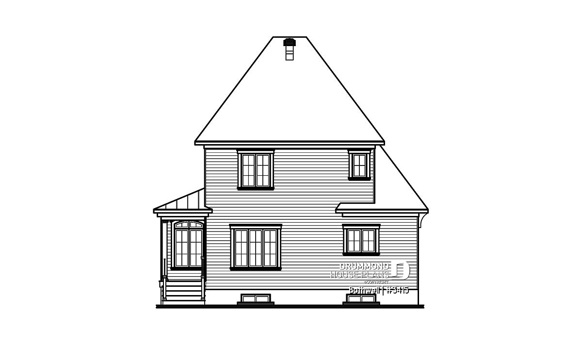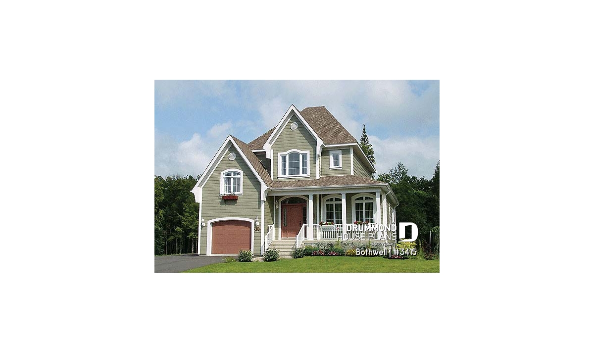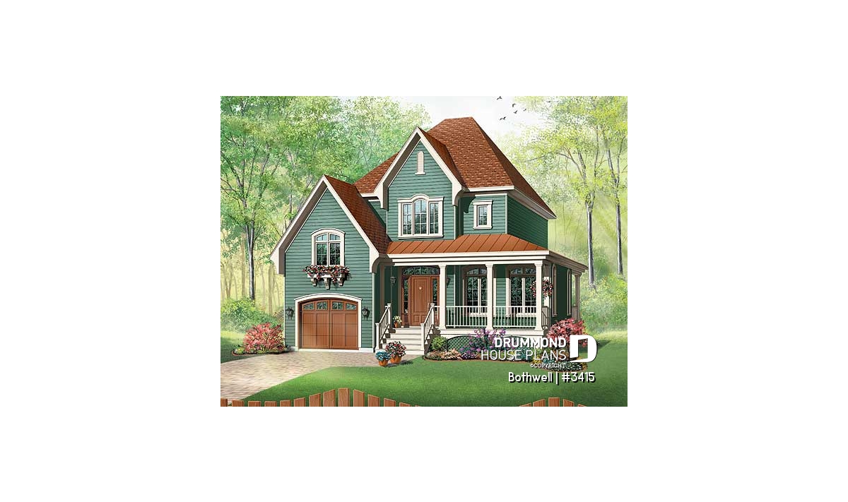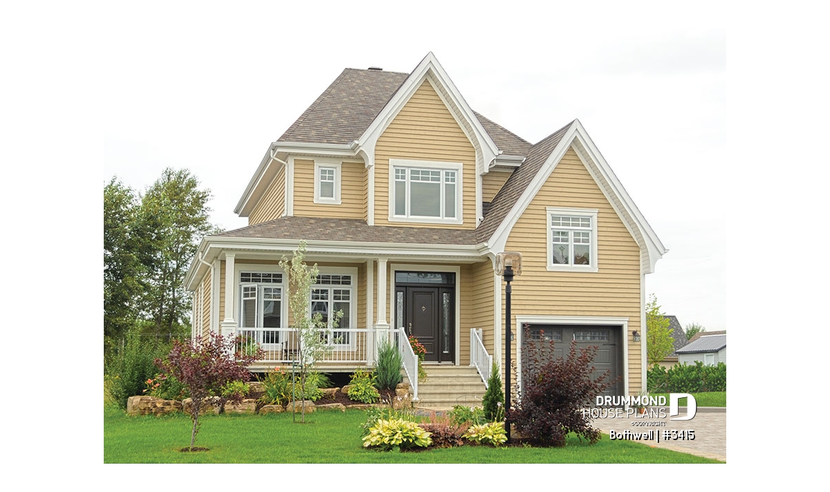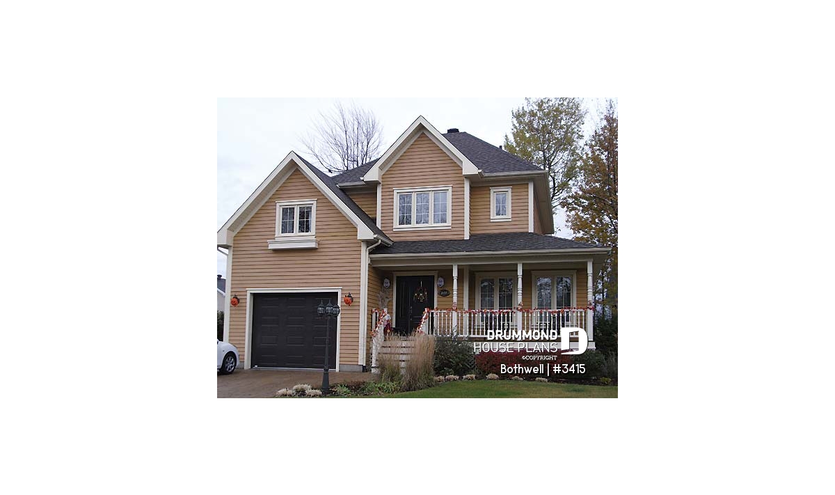 So, in addition to the lowered garage which simplifies things for builders, this cottage proposes two covered galleries, one at the front and the other at the rear attached to the dining room.