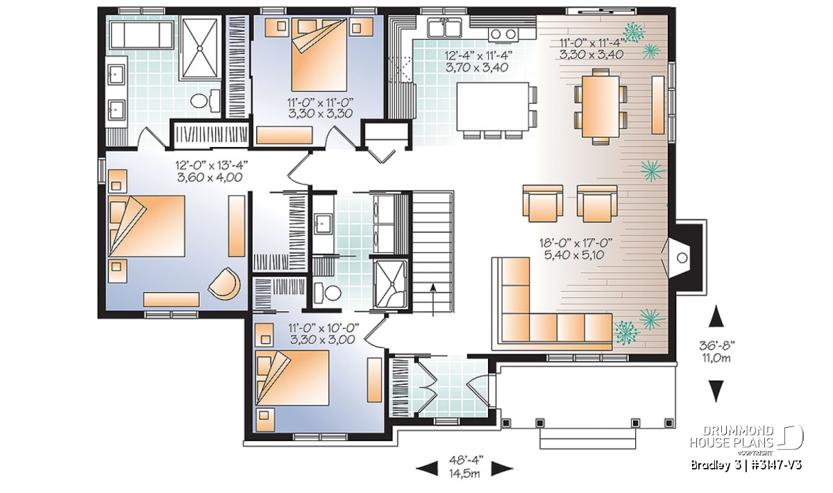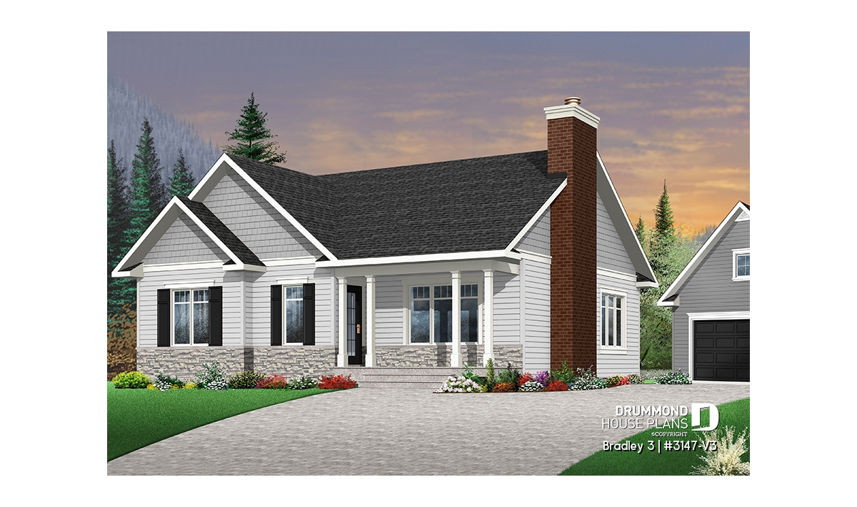 Inspired by plan 3147-V2, Bradley 2 has a larger floor plan with an extra bedroom and a second full bathroom.