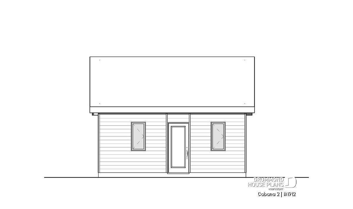 A versatile room is proposed, with access to the outside by the back. This space could serve as a storage as well as a guest room. A shower room with vanity and toilet, and convenient access to the outside, completes this new pool house plan or cabana plan!