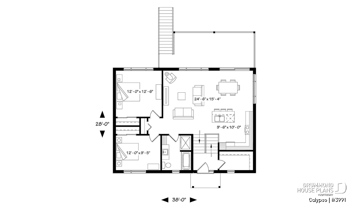Large covered deck near dining area.