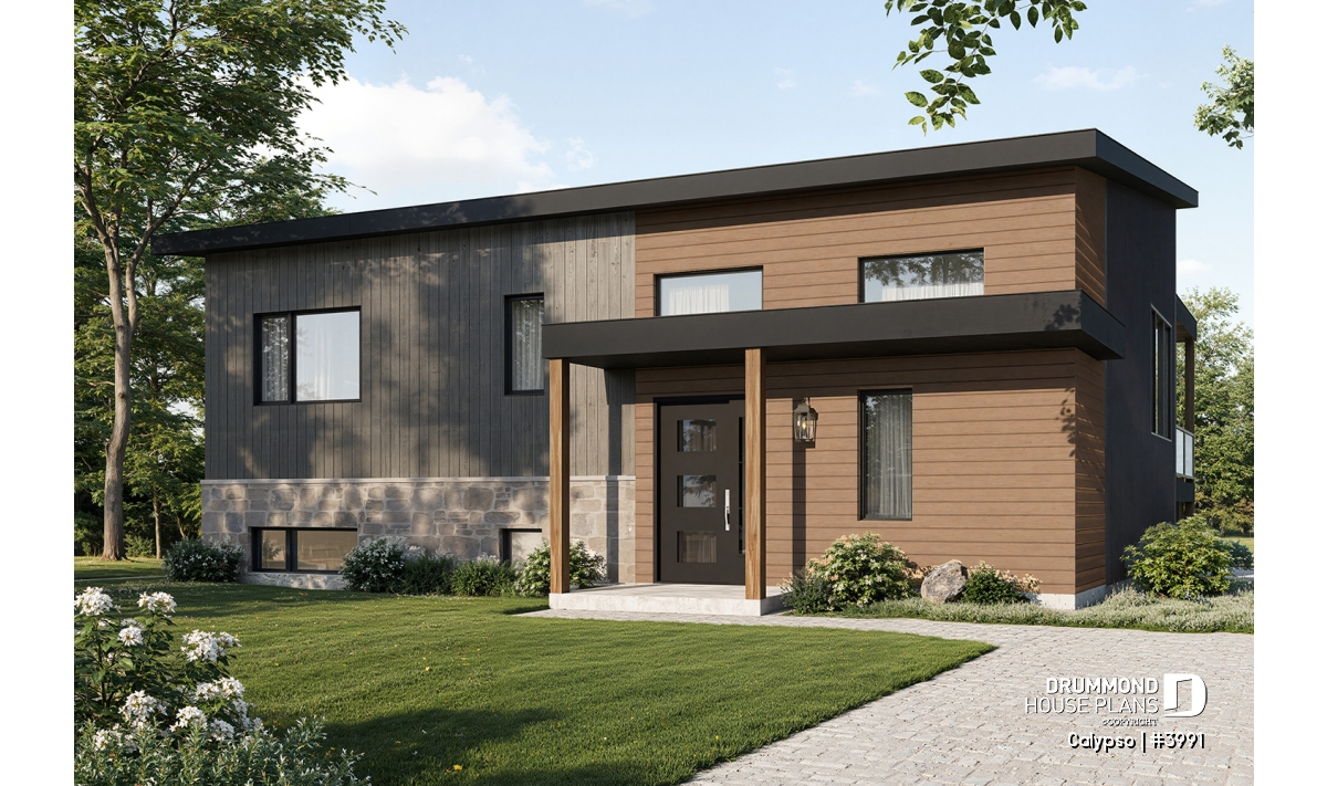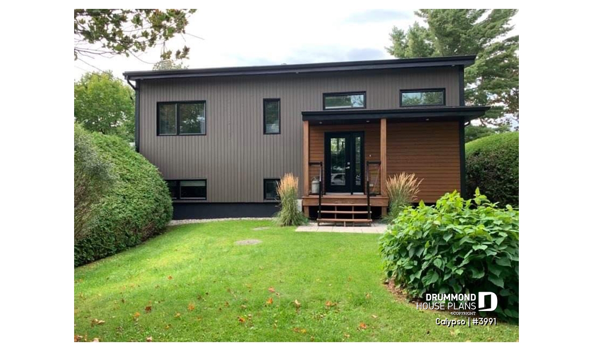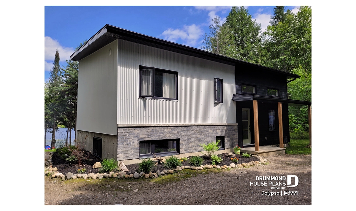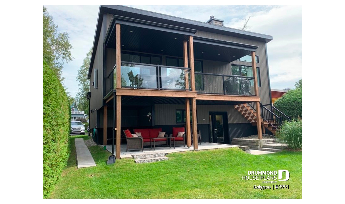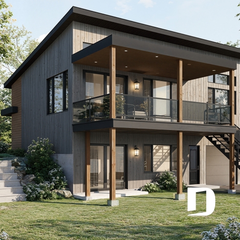 The following modern contemporary style chalet plan, CALYPSO (3991) will satisfy any nature lover. With its two levels, the ground floor and the basement witch is a garden level, this chalet will allow you to have a panoramic view of the landscape.