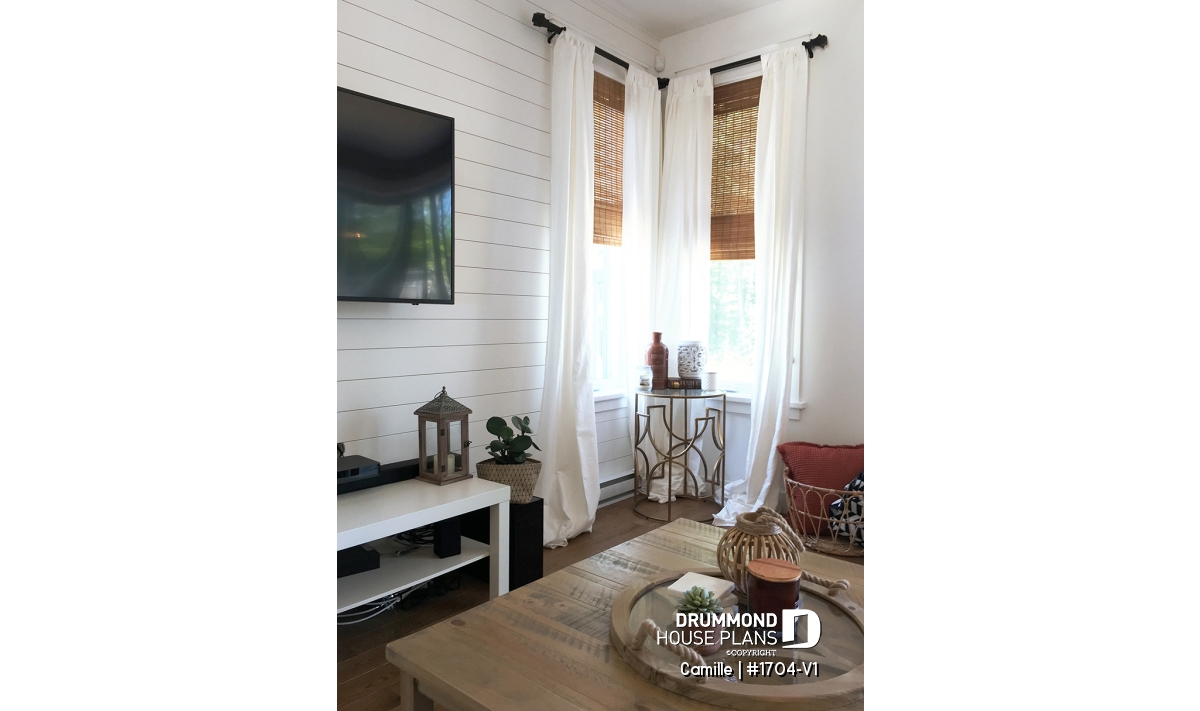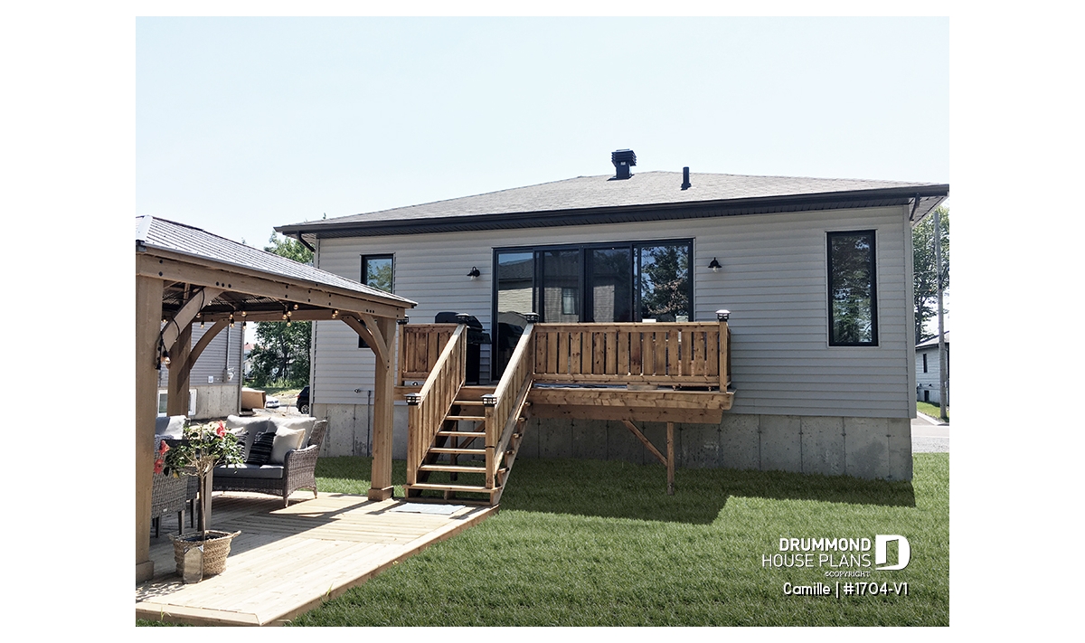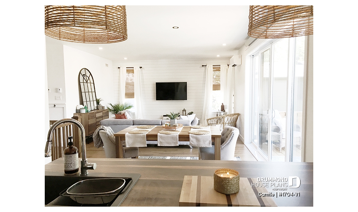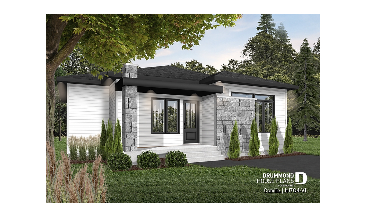 The Camille house plan (#1704-V1) stands out with its mid-century modern style, offering clean lines, timeless appeal and a layout perfectly suited to today’s lifestyle. Designed to deliver comfort from day one, this home features 1,178 sq. ft. on the main floor, with an equally sized basement, providing excellent potential for future expansion.