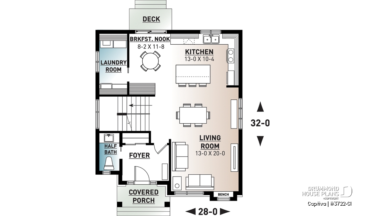 Gound floor laundry room, Island, Open floor layout, Ceiling over 8', Walk-in master bed., Entrance hall, Breakfast nook, Separate bath and shower, Double sinks, Builder