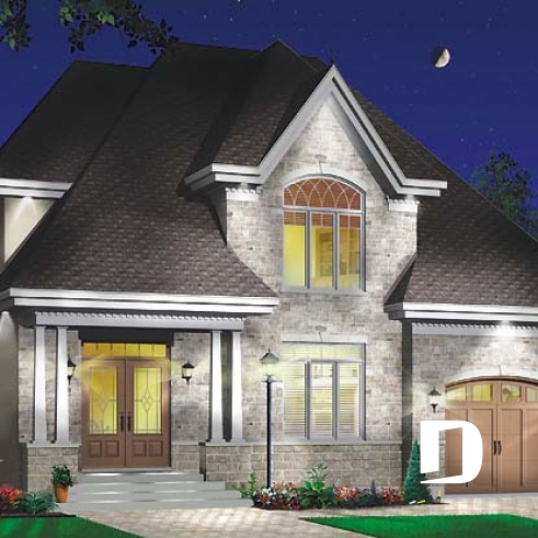 Gas fireplace, cathedral ceiling in bedrooms #1 and #2, covered front stoop, decorative mouldings, abundant and special fenestration, French doors in master bedroom.