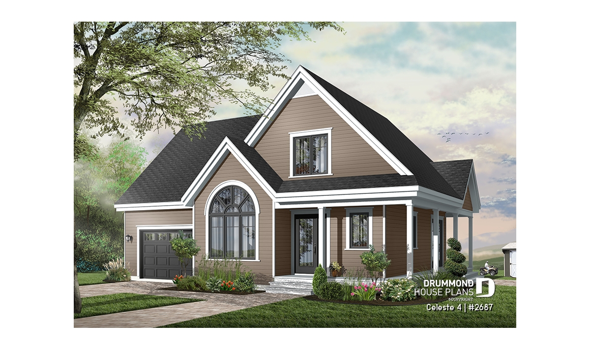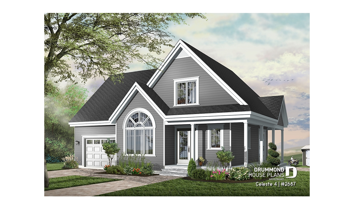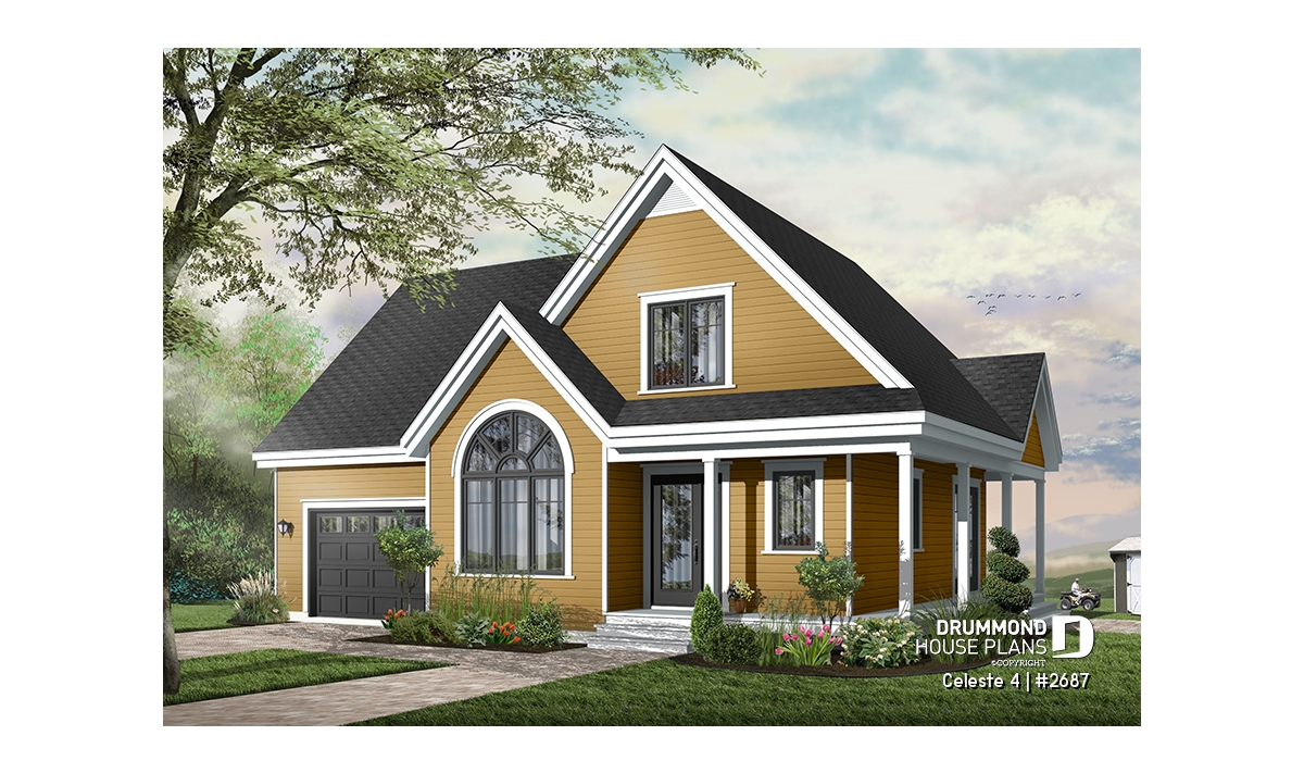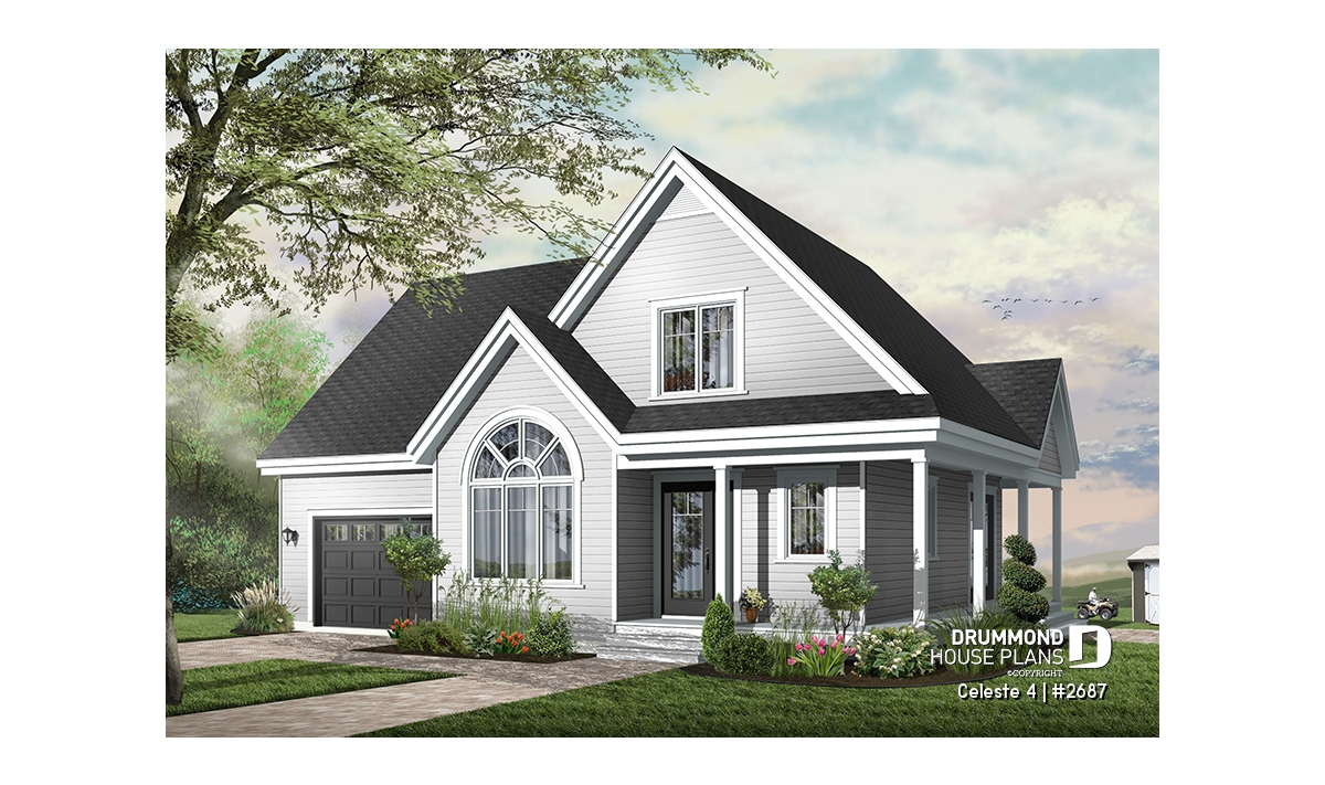 This country cottage steps up the charm factor with a pillared wrap-around porch. Inside, a well-designed plan ensures maximum features in a small space.