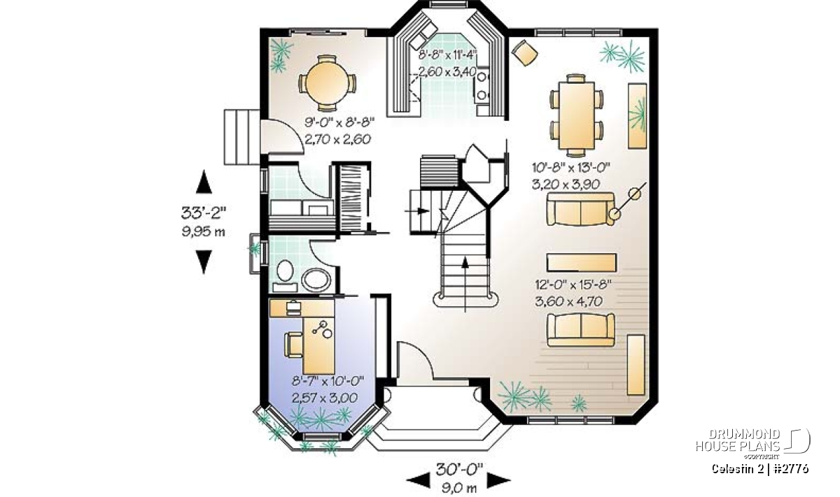 Equipped with balanced volumes and a more than remarkable fenestration on the main façade, this cottage plan no. 2776 from Drummond House Plans, also called Celestin 2, charm us as soon as it appears to our eyes. The raised color, suggested by the acrylic coating on the walls, is certainly not foreign to this immediate effect. Let us therefore see if the interior wants to be as catchy.