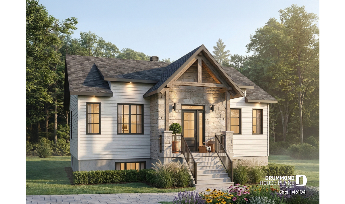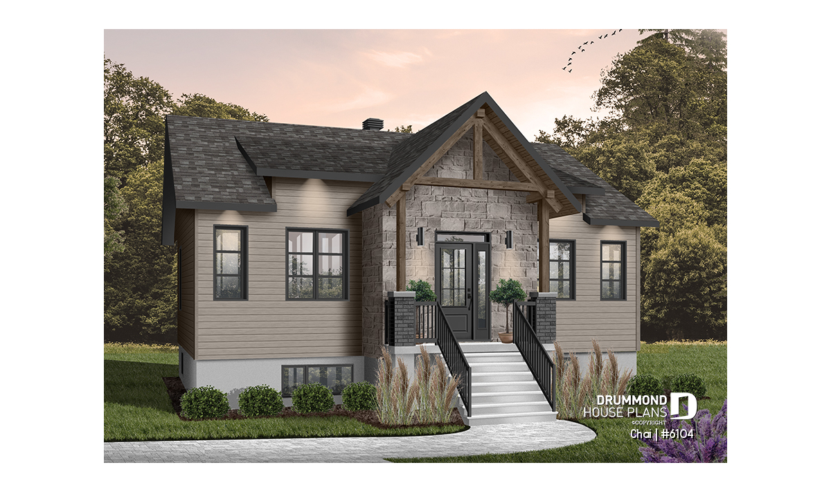 Charming 2 bedroom one-story modern rustic house plan with lots of amenities.