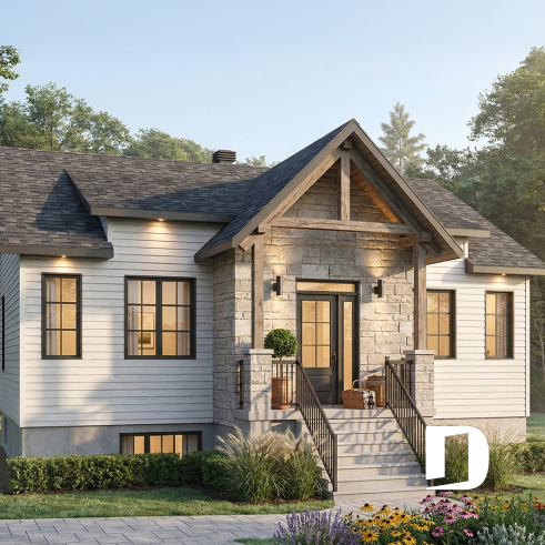 This very trendy Modern Rustic house plan style, offers 2 bedrooms and lots of amenities, and is ideal for a young family, starting with the entrance with 2 wardrobes and direct access to the laundry room.