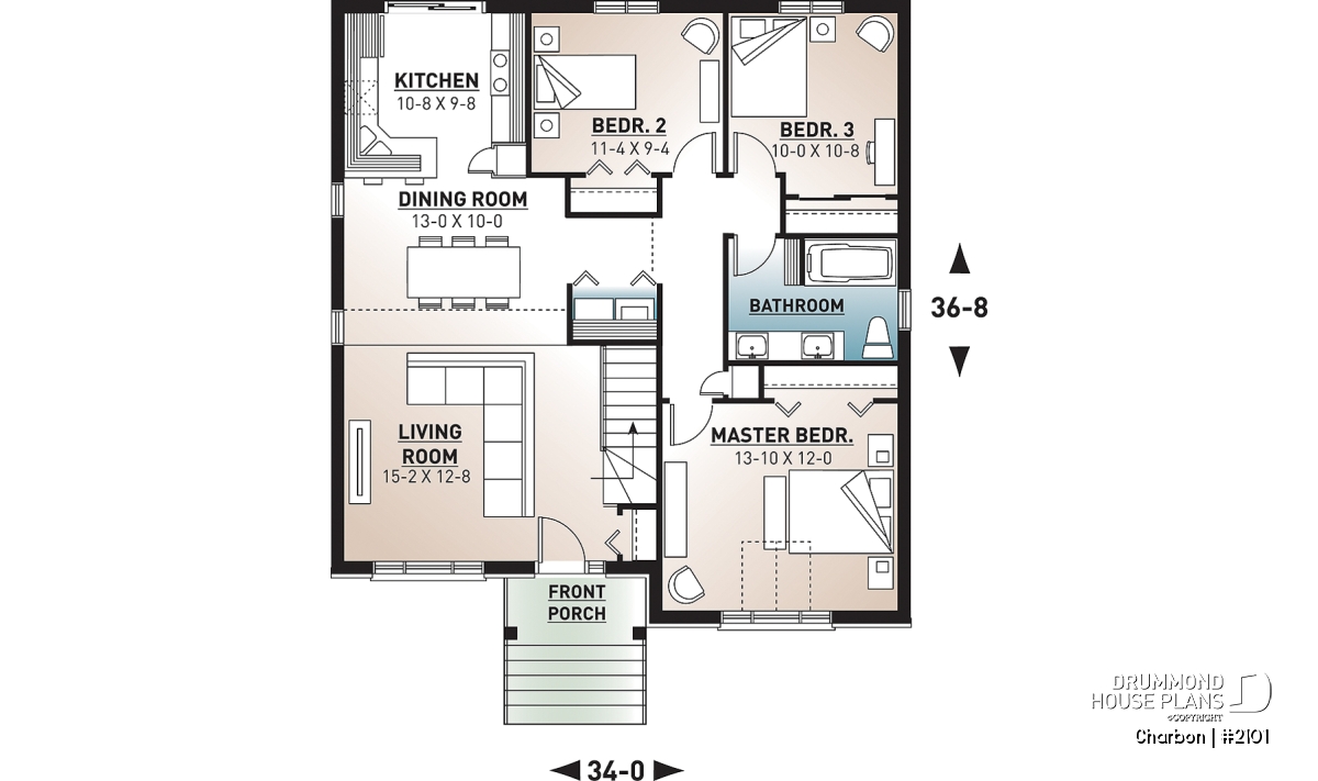 Small modern 3 bedroom house plan.