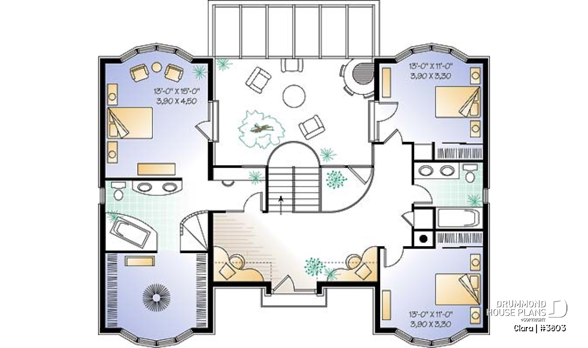 We ascend the beautiful stairs located in the heart of the greenhouse to reach the second level. We first come across two corner computer areas, followed by two superb secondary bedrooms sharing a bathroom and a remarquable master suite including a private bathroom and a walk-in closet sufficiently large enough to be converted into a fourth bedroom if desired.