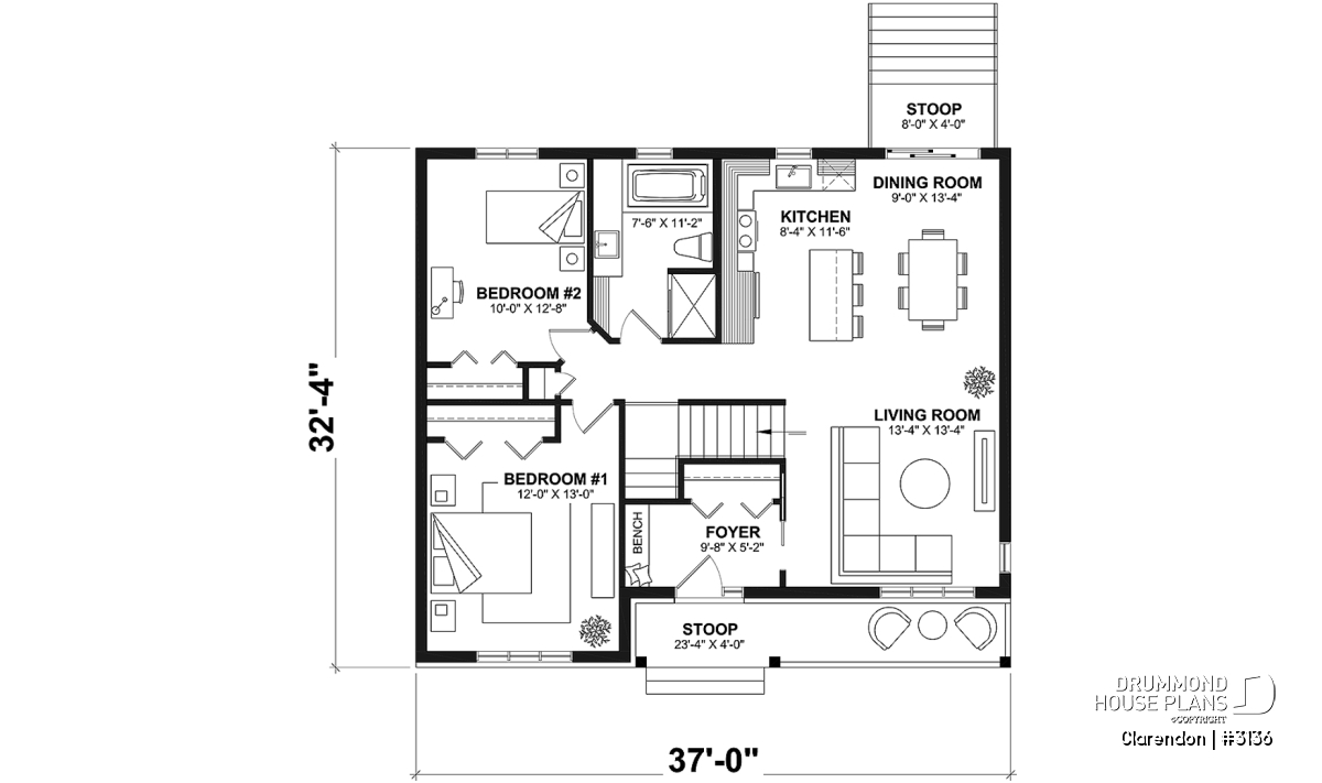 Craftsman style starter home, open living concept with patio door, large shower. Foyer in front, open floor plan throughout common area. Full bathroom with separate 3' x 4' shower enclosure. Two nicely sized bedrooms.