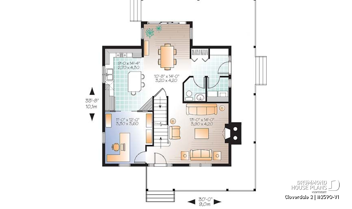 Flexibility of home office or 4th bedroom on ground floor. Dining room with abundant windows. Kitchen with central island. Laundry space on the ground floor. A master suite upstairs with walk-in closet and private bathroom with suggested 4' x 4' shower.