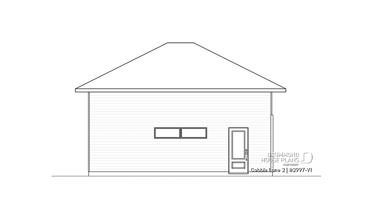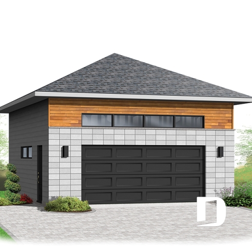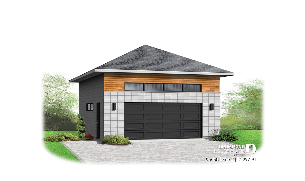 2-car garage plan, Contemporary/Zen with large window, and mezzanine for storage