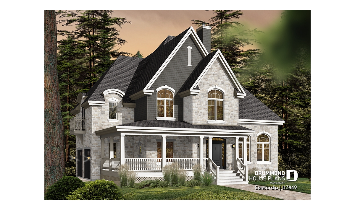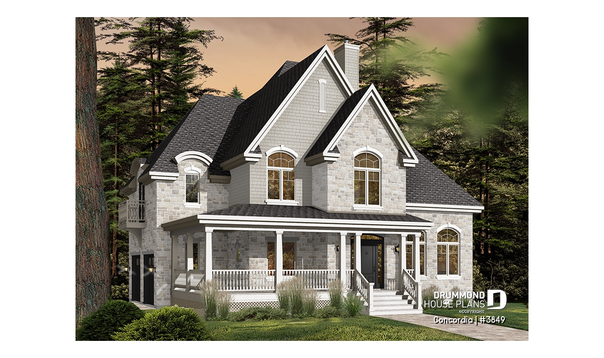 Its elegant lines and timeless looks will remain classic throughout the years. The brick/stone on the main facade and at the base blended with rough-cast coating on other facades along with the gables and dormers come together in a striking combination. The garage includes stairs to the basement and an attractive room upstairs with includes a dormer and abundant storage space despite its three way sloping roof.