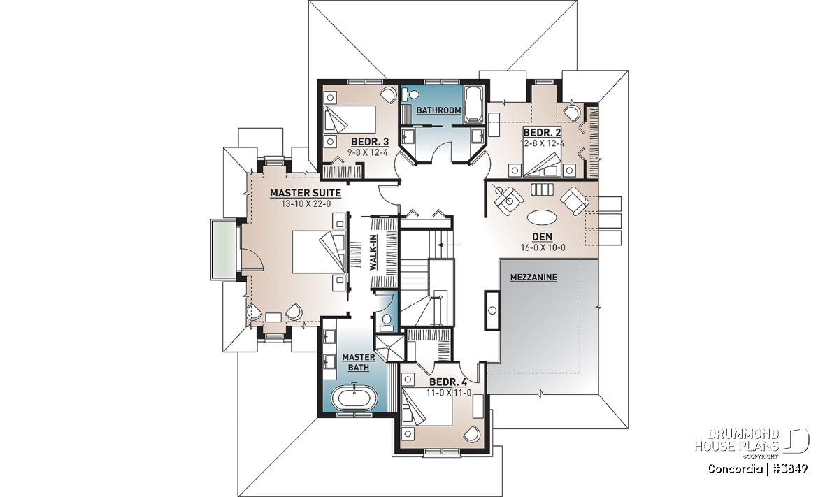 Fireplace, Mezzanine, Gound floor laundry room, Office / Study / Den, Side entry garage, Island, Ceiling over 8', Cathedral ceiling, Master suite upstairs, Covered patios, Breakfast nook, Entrance hall, Warparound, Formal dining room, Walk-in master bed., Sitting area, Library, Separate bath and shower, Double sinks, Sloped ceiling