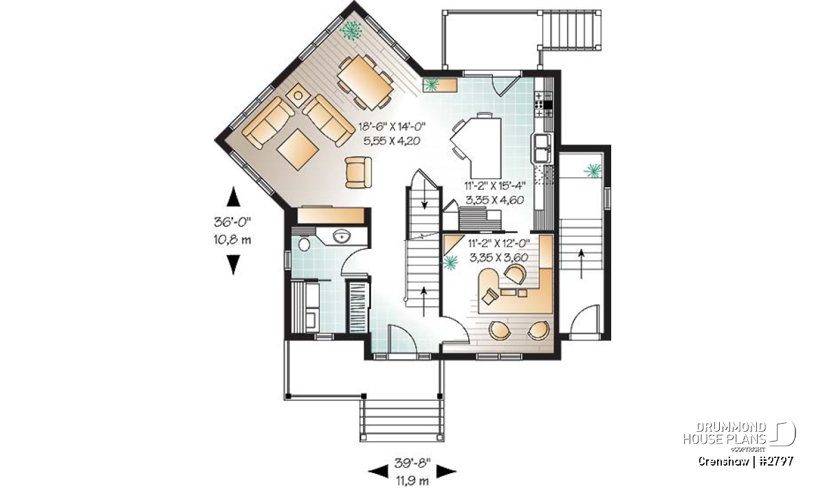 Open floor layout, Access to basement from exterior, Gound floor laundry room, Island, Walk-in master bed., Office / Study / Den, Double sinks, Separate bath and shower