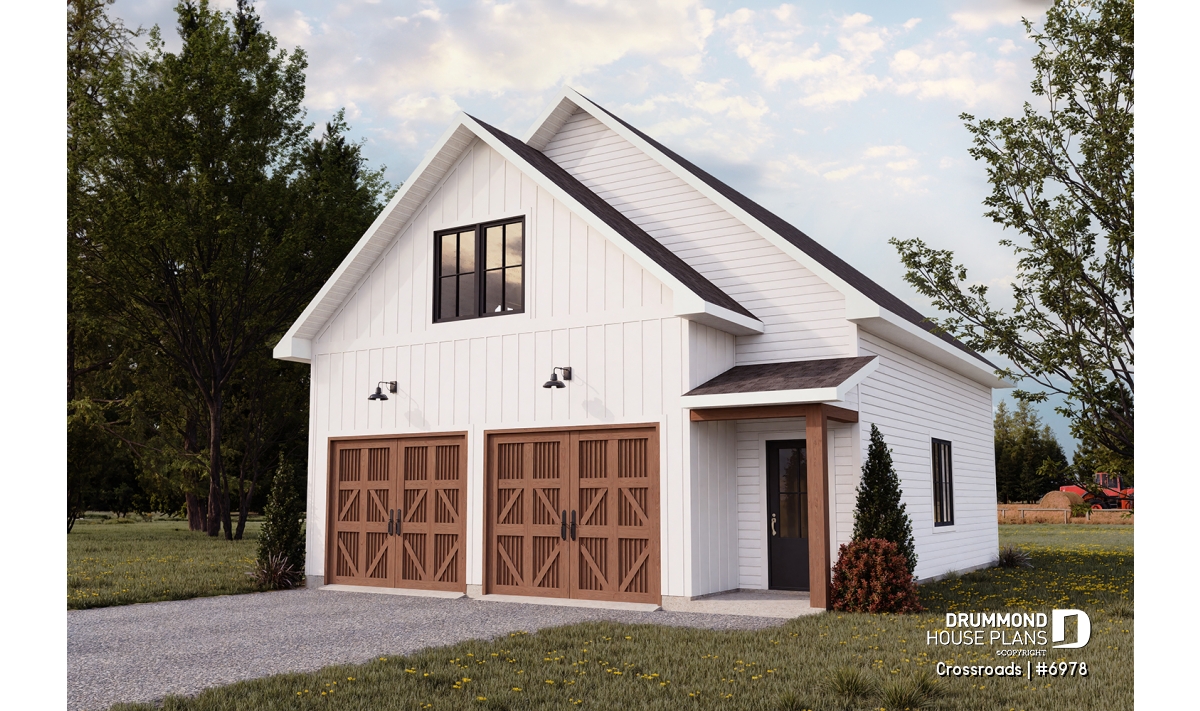 This beautifully designed country-style garage brings together generous parking, smart storage solutions, and warm farmhouse charm—all within a versatile and highly functional layout. With its graceful covered porch, timeless cottage-inspired exterior, and thoughtful interior planning, it is the ideal addition for homeowners seeking both practicality and character.