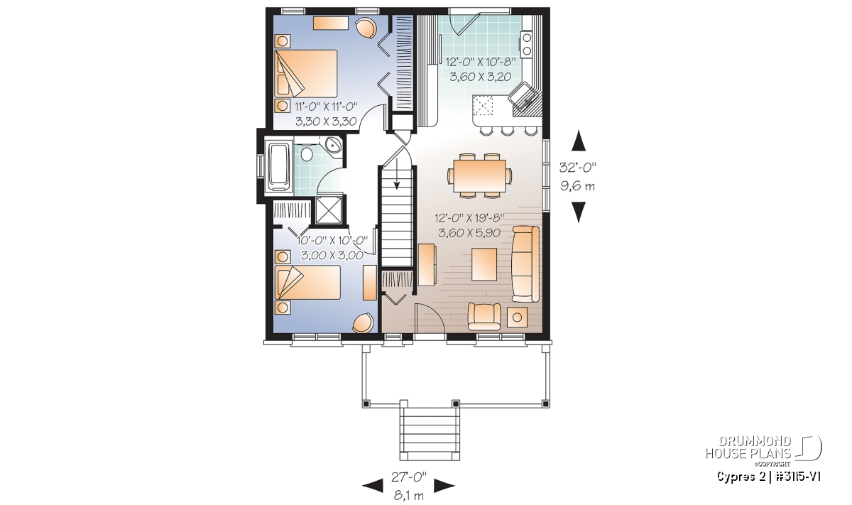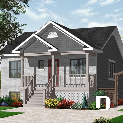 Nice front porch. Activity area entirely opened. Kitchen with adequate storage and double patio door to the back. Simplified construction home.