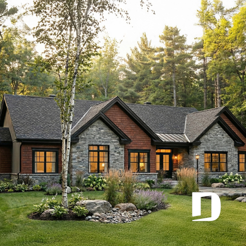 The Dambroise 2 (#3224-V1) is a stunning modern rustic bungalow house plan designed to offer both comfort and versatility, with a total of 2,016 sq. ft. on the main floor and an additional 2,016 sq. ft. basement ready to be customized to your needs.