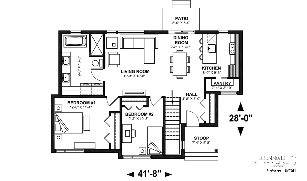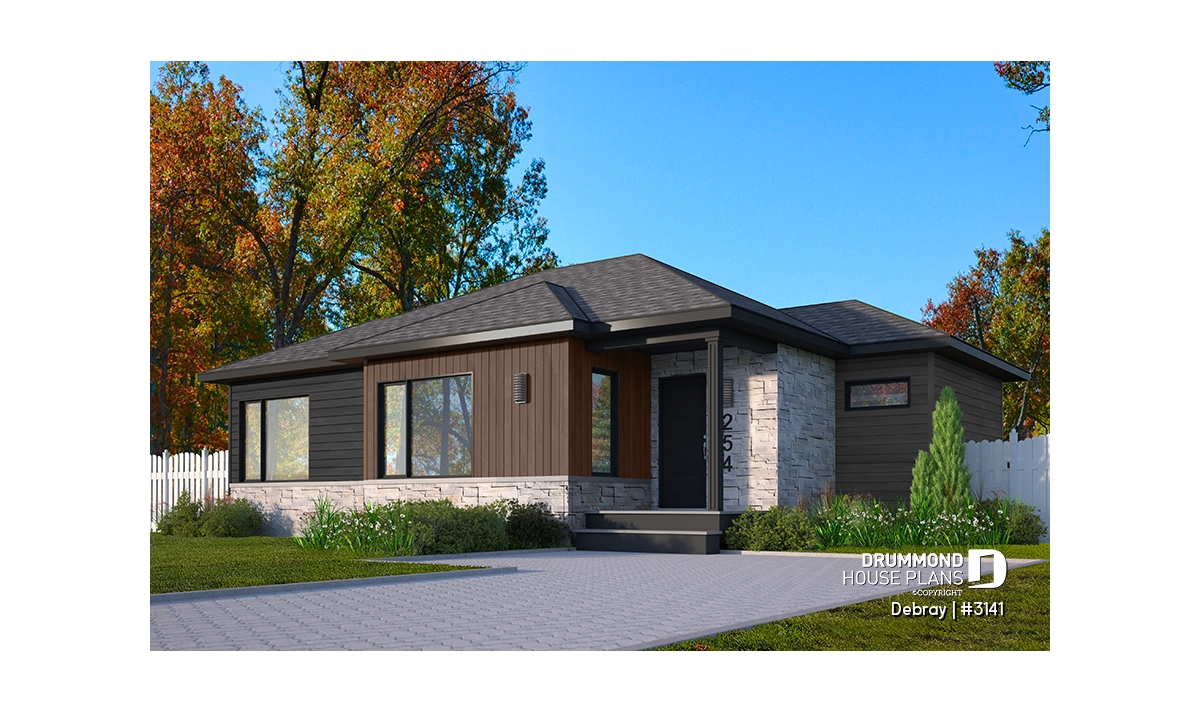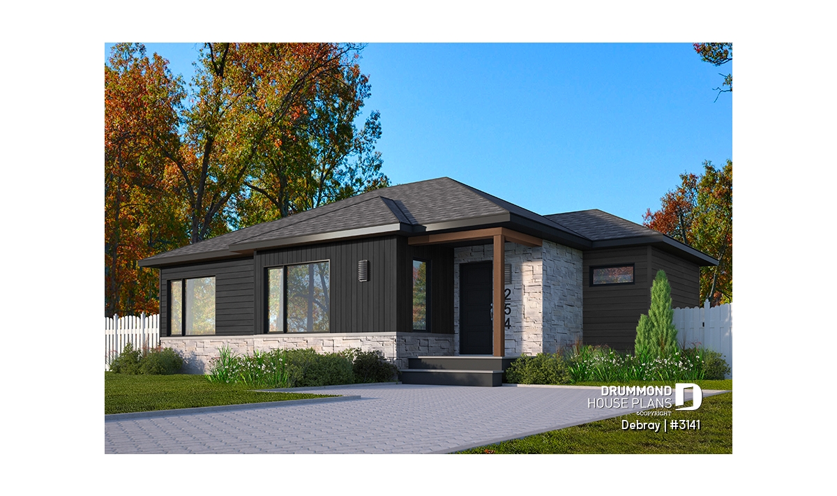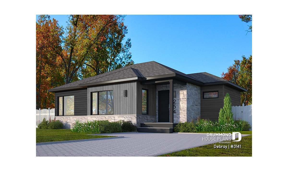 House plan DEBRAY (#3141) offers a well thought out 998 square feet. Compact and modern, this home is designed to maximize the living space.