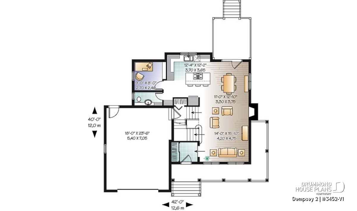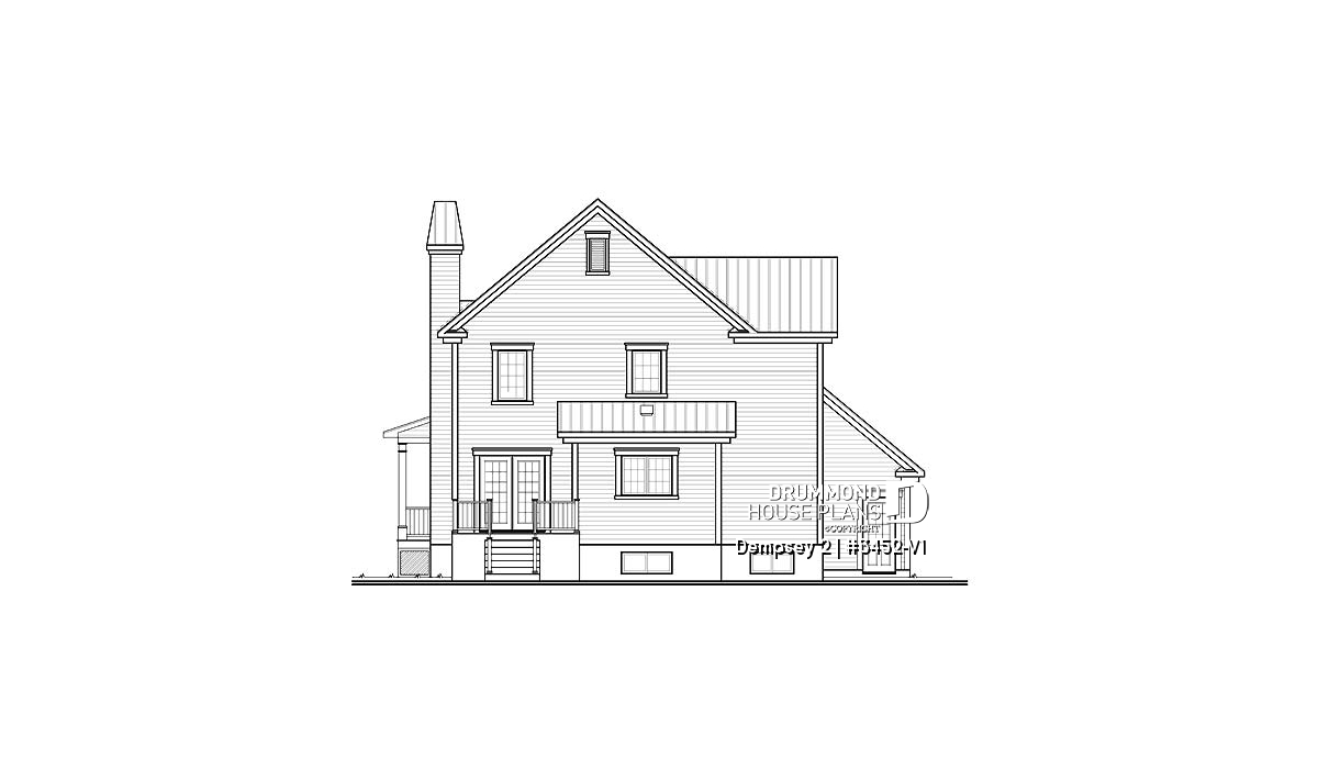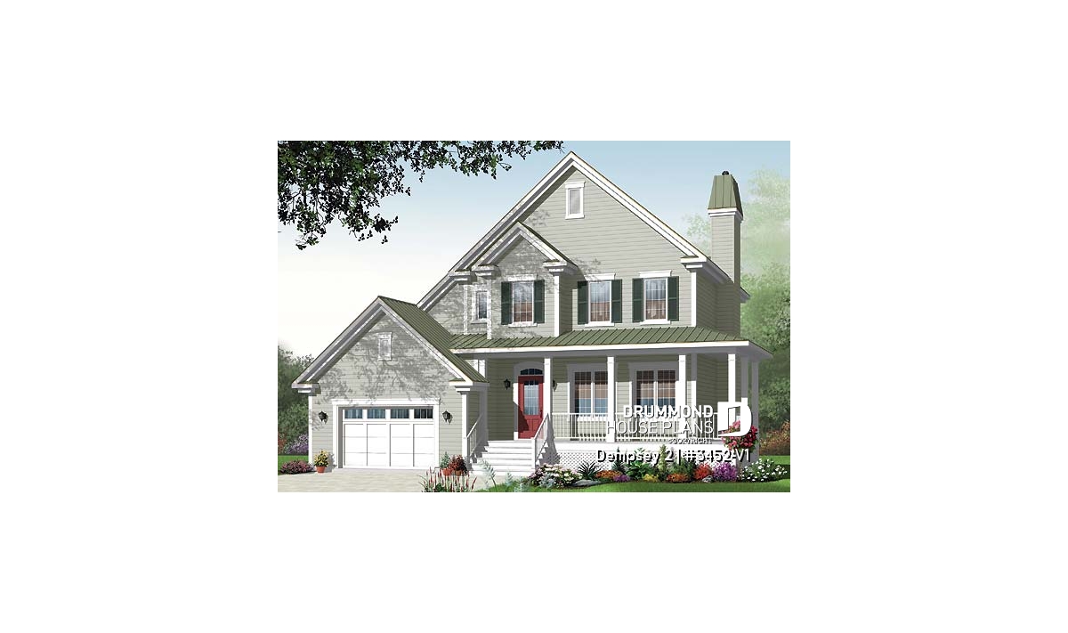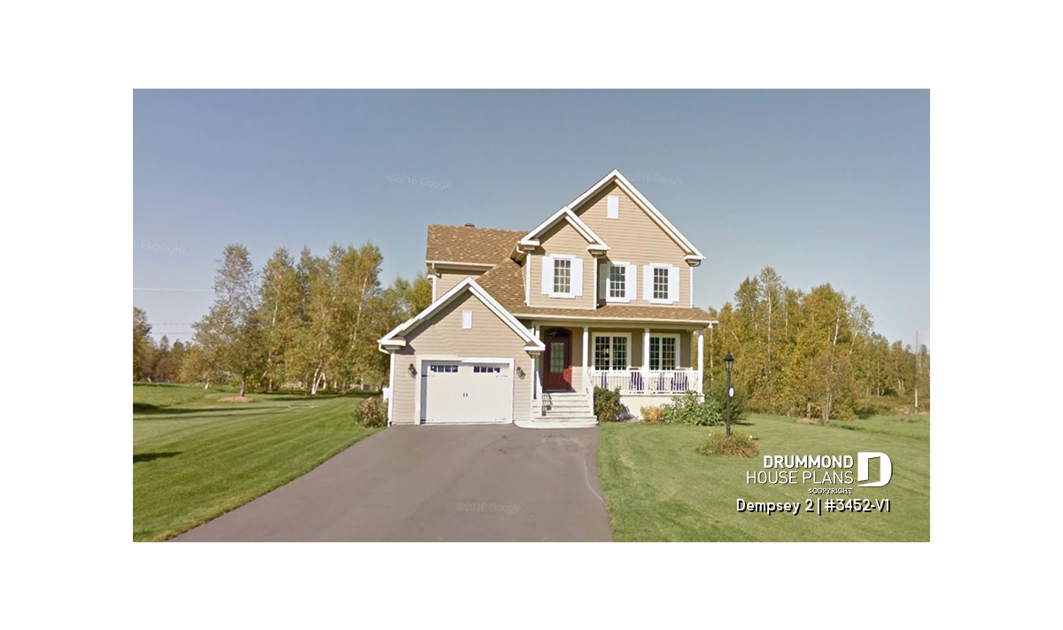 This house is an attractive version of an already well-liked plan. Have you ever noticed original plan number 3452? You then should really like this model 3452-V1 for which the reversed approach proposes both for the exterior, an enlarged garage by four (4) feet and deeper by two (2) feet, plus an extended porch along the side, steel sheet metal roofing that has been pre-painted. On the inside, a fireplace has been designed between the dining room and the family room along with an 8’-6” ceiling on the first level. Still regarding the interior, this model preserves the excellent assets from the original plan such as the landing at the main entrance or the vast well-lit family room that is completely open-aired and suggests a kitchen with a central lunch counter. Not forgetting that on the first floor, a home office adjoining the kitchen is offered as well as a large exterior terrace which has a cold room beneath it. On the second floor, the assets refer to a large bonus space designed over the garage and especially the three (3) large bedrooms, one being the master suite with a private bath and walk-in closet. Here, the laundry room is adjacent to the shower room which has become more and more appreciated on this level. The parents as well as the children truly find there comfort in these rooms.