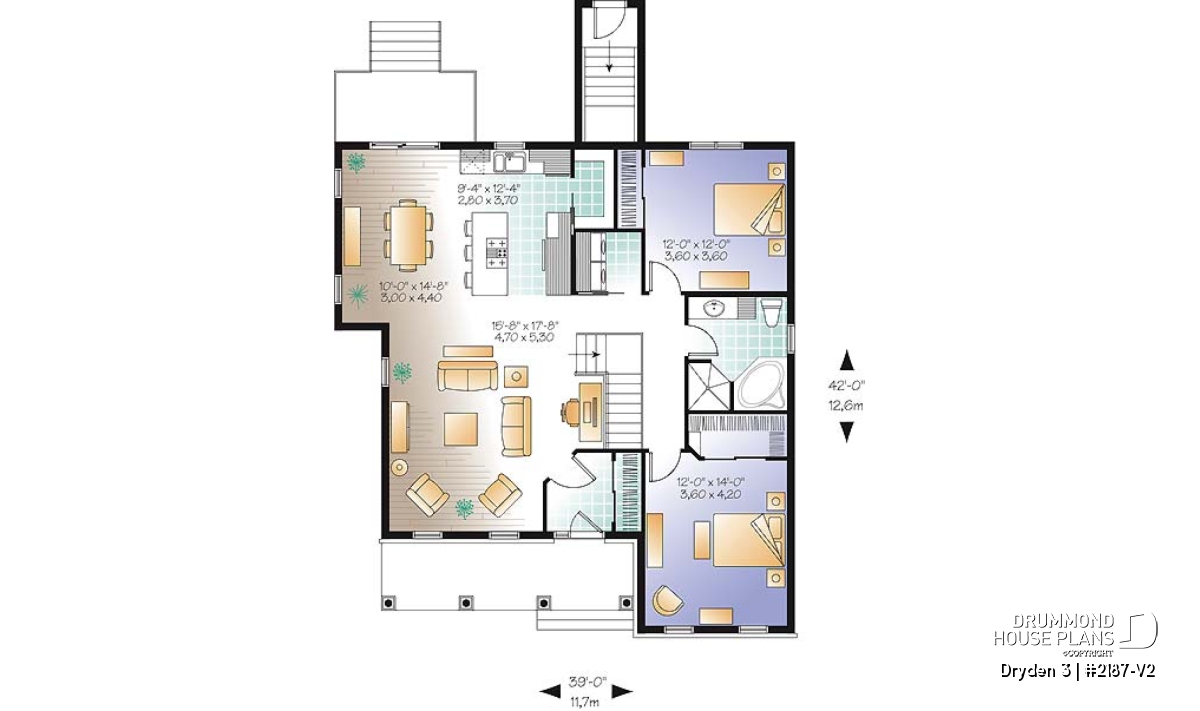 Foyer at the main entrance . Computer nook adjoining living room. Kitchen island with lunch counter and walk-in pantry. Two bedrooms with discrete access to 4-piece bathroom complete with 42 " x 48 " shower. Laundry area on the ground floor. Exterior stairs to basement.