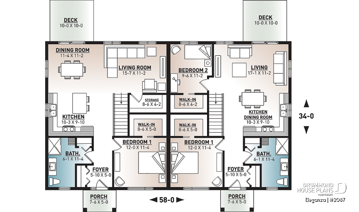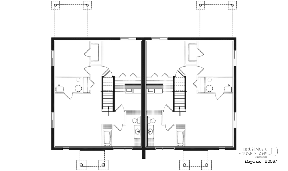 Modern duplex plan with 1 or 2 bedroom options included in the plan.