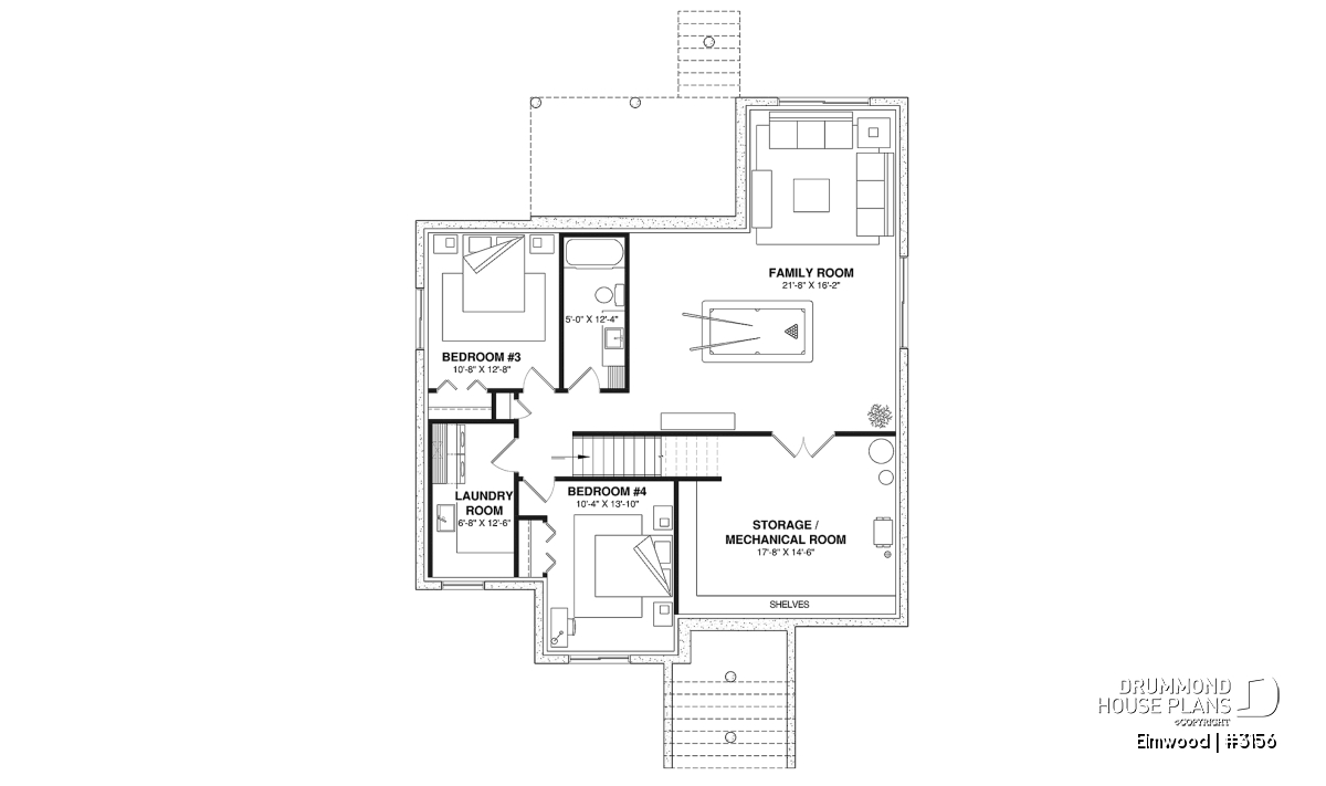 *If you wish to purchase the finished basement plan, as presented on this plan page, please select this option in the shopping cart, in the "Selection of foundation type" section. If you do not select this option, you will receive the unfinished full basement option, at no extra charge.