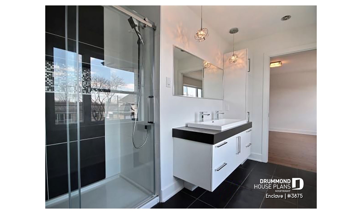 Upstairs, the master retreat includes a walk-in closet, double vanity and 5’ x 5’ shower. The two secondary bedrooms share a 3-piece bathroom.