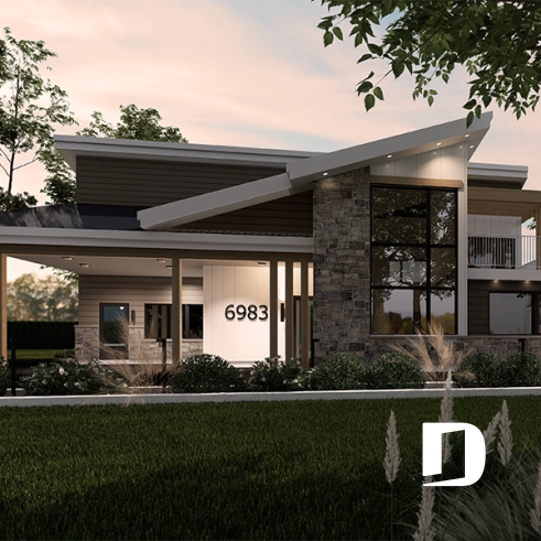 Mid-century inspired house, offering 3 very different floor layouts!
