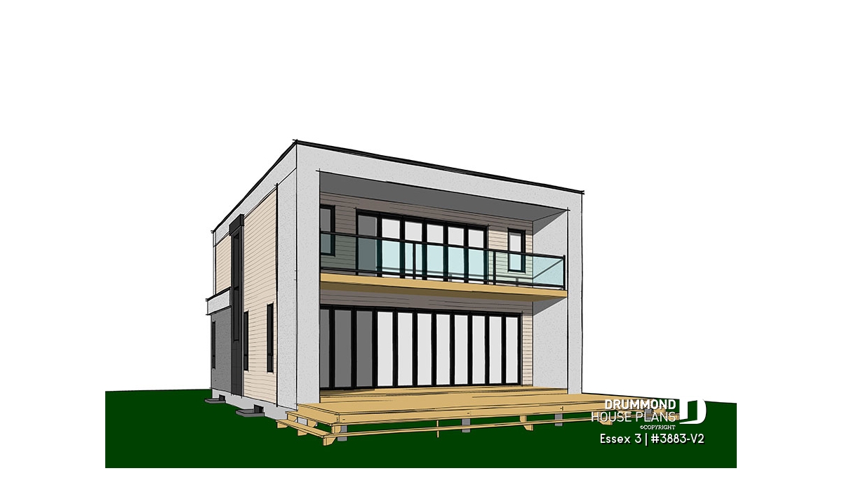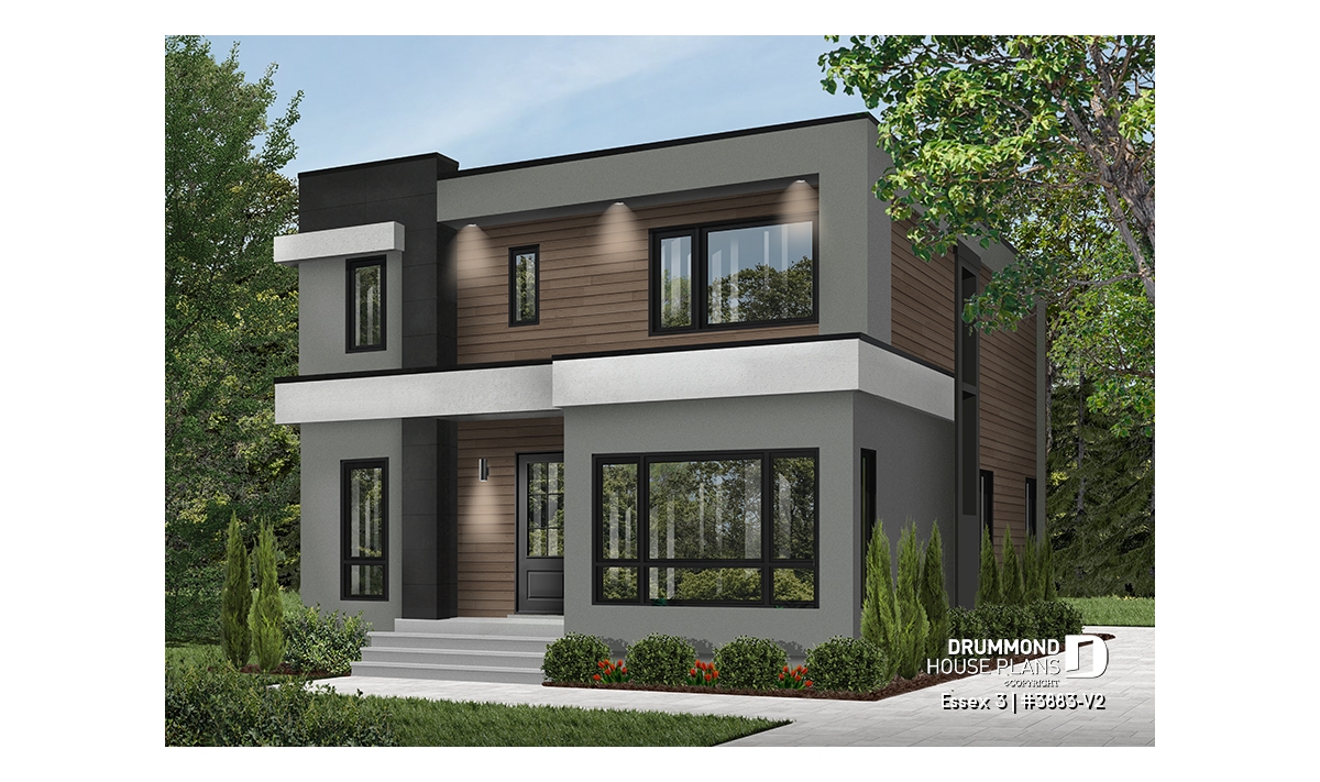 The sleek style of this Modern house plan will appeal to our forward-thinking customers that seeks to distinguish themselves, while respecting a tight budget. Offering 3 to 4 bedrooms, including a master suite on the second level, this house floor plans will appeal to families with several children as well as blended families, with all its versatile rooms (on the main floor and with an unfinished basement).