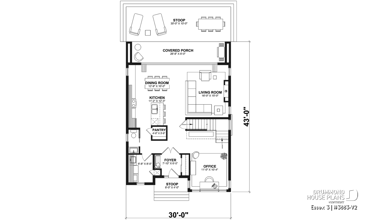 Gound floor laundry room, Laundry chute, Office / Study / Den, Fireplace, Island, Pantry, Ceiling over 8', Master suite upstairs, Narrow lot, Covered patios