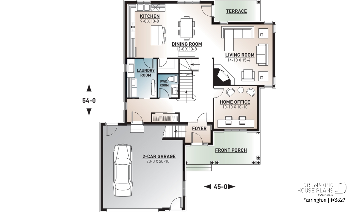 Beautiful Traditional home plan with a 2-car garage.