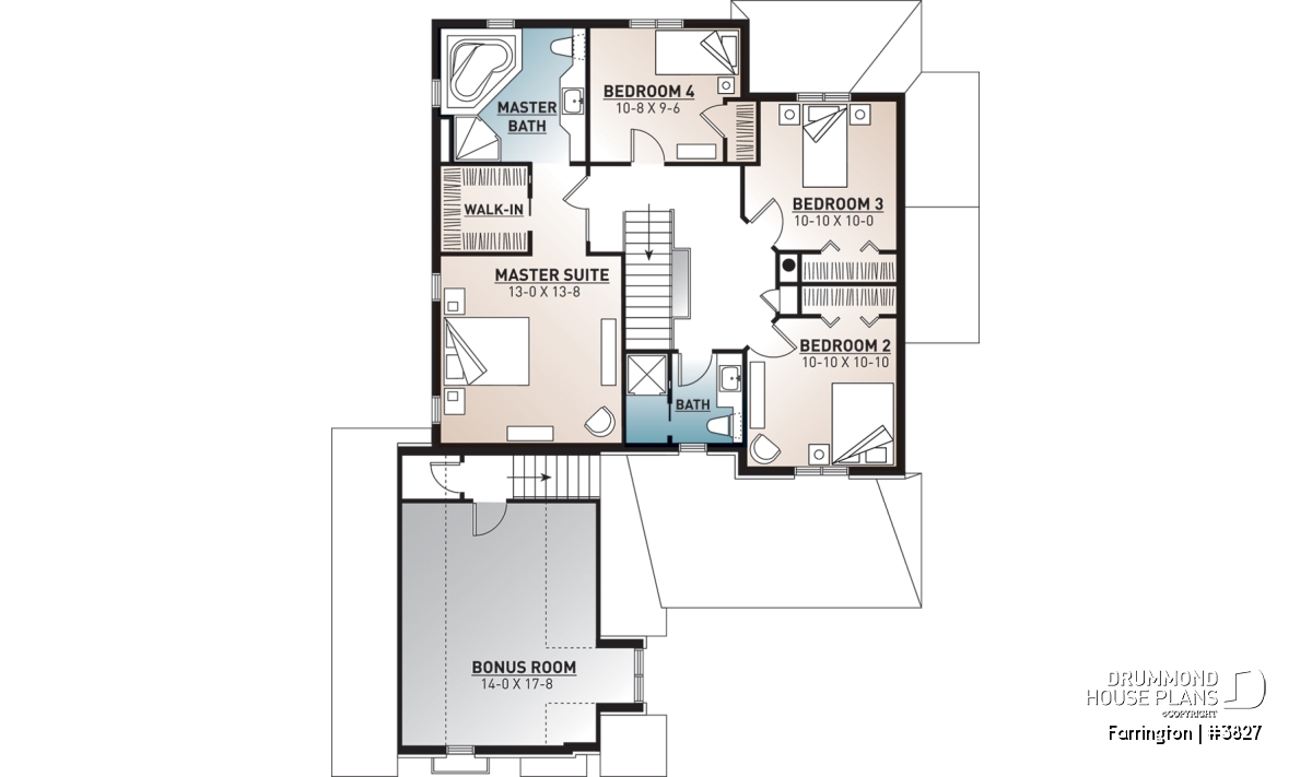 Master suite with walk-in closet and private bathroom.