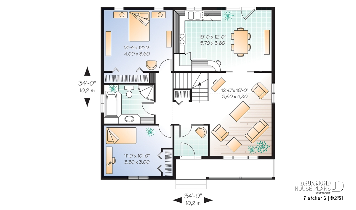 Two comfortable bedrooms on the main floor make this plan ideal for a couple, a small family, or homeowners looking to downsize without compromise. Completing the layout is a well-organized bathroom, designed to balance comfort, functionality, and efficiency.