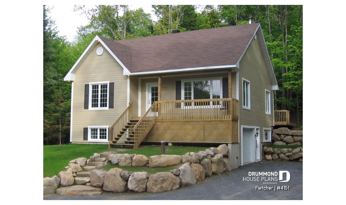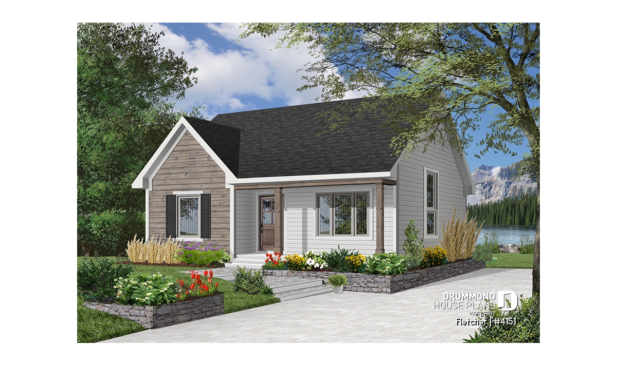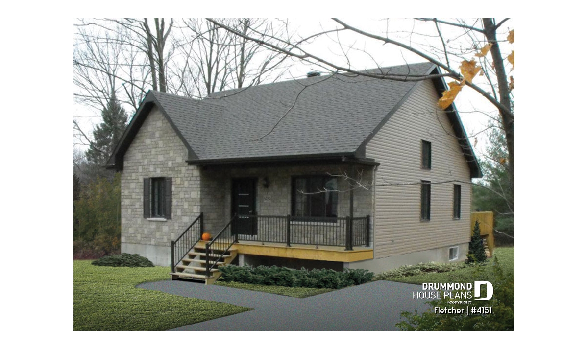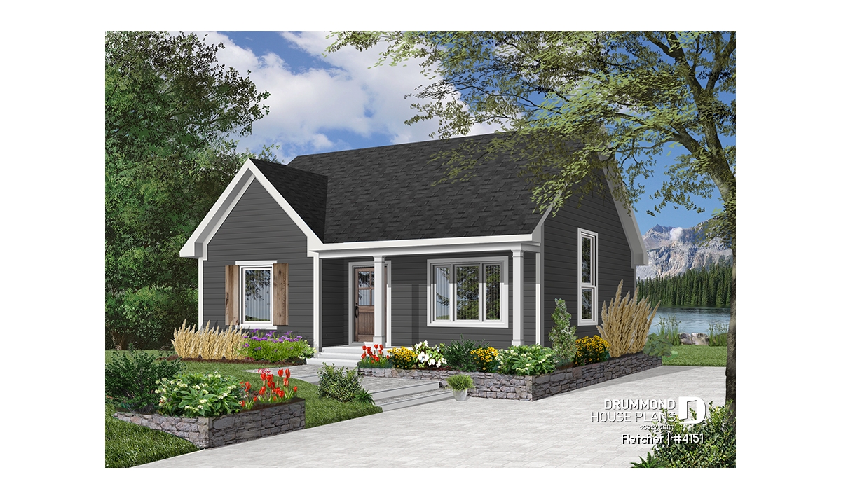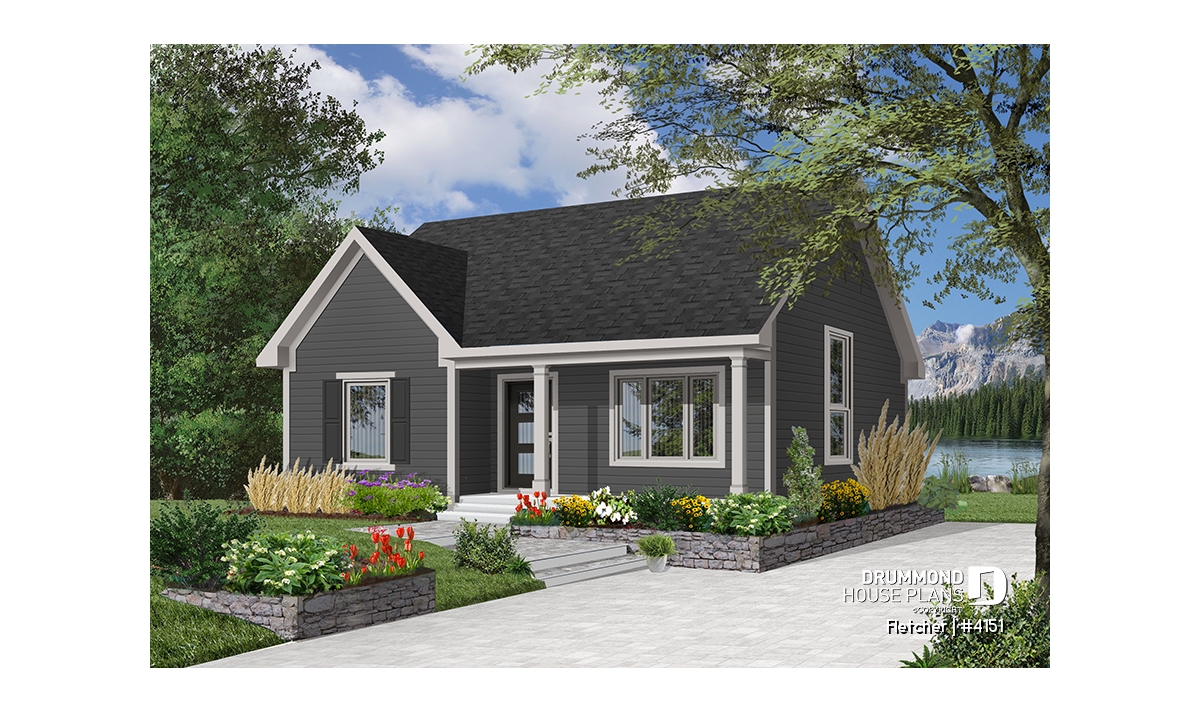 Small and affordable bungalow house plan, 2 bedrooms, cathedral ceiling, closed foyer