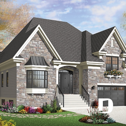 9' ceilings on entire ground floor. Open activity area facing the rear. Kitchen with island. Living room with storage and triple patio door opening onto a covered outdoor terrace. Master suite located above the garage (8 steps on the ground floor) with large closet and private bathroom.