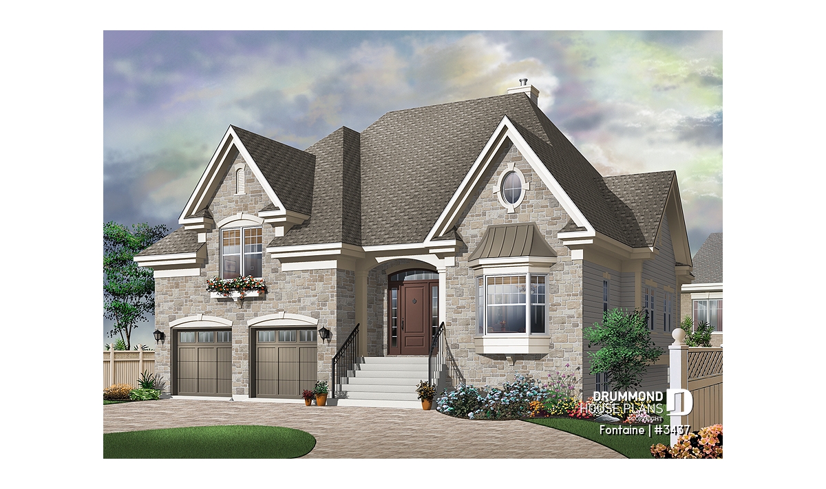 The FONTAINE house plan (#3437) presents an original interior layout that responds perfectly to the growing demand for manor-style homes featuring a double garage and a more accommodating, family-friendly footprint. Inspired by European architecture, this home plan combines elegance, practicality and thoughtful spatial organization.