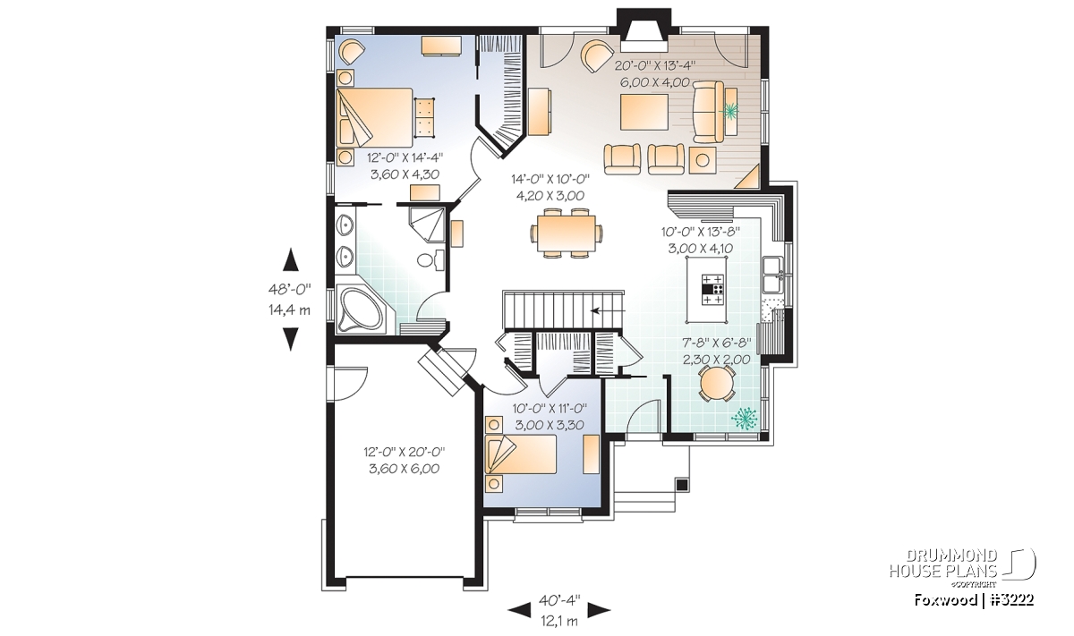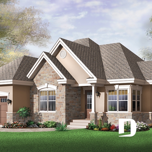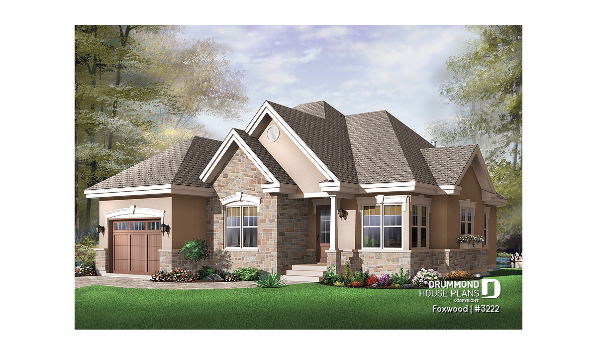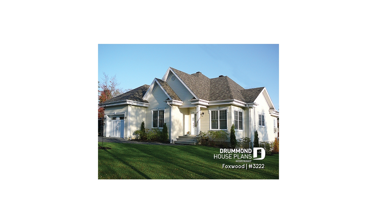 Beyond the entrance foyer, the surprisingly well organized kitchen is bathed in natural light from the double windows of the breakfast nook. The central island adds to the livability of this home and opens onto a dining room situated in the center of the home. The enchantment continues upon entering the comfortable living room with its cozy fireplace tucked in between the two duos of doors to the garden. The well appointed bathroom and two generously sized bedrooms, each with ample closet space along with a garage that is accessible from inside the home or from the outside complete the features offered by this exquisite plan.