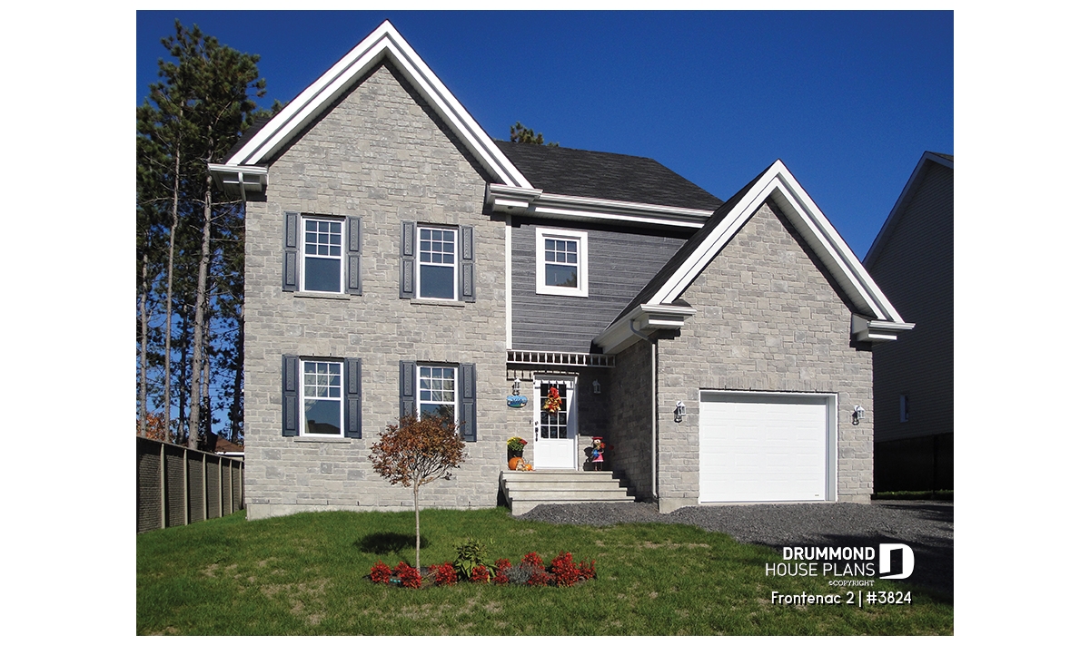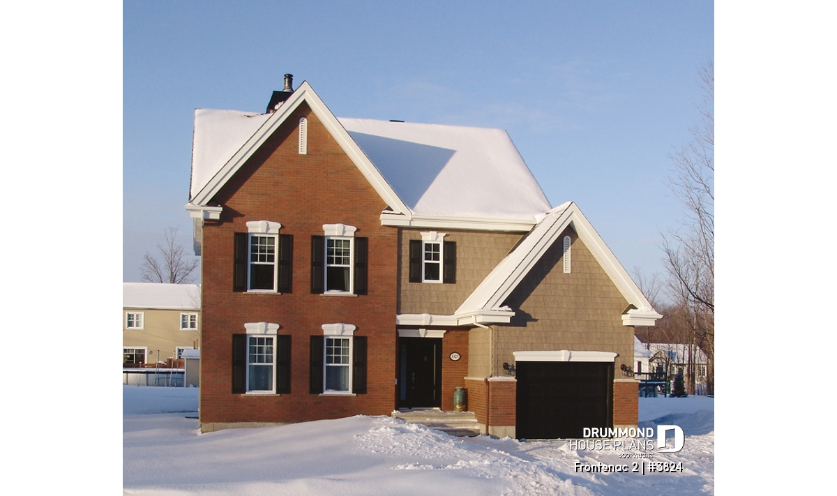 Affordable 2-story traditional house plan with garage, master suite and large family room.