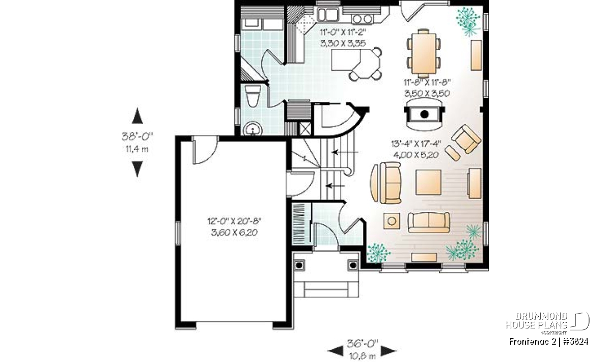 One-car garage. For a two-car garage, see plan 6824-V1.