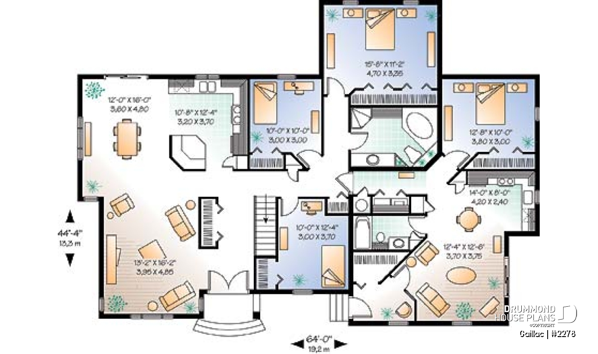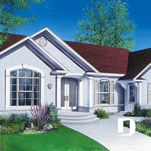 Three bedrooms on the main floor with another bedroom for the grand-parents. Possibility of sharing the laundry room with the rest of the family. Island lunch-counter in the kitchen. Corner bath. Foyer with storage area in the apartment.