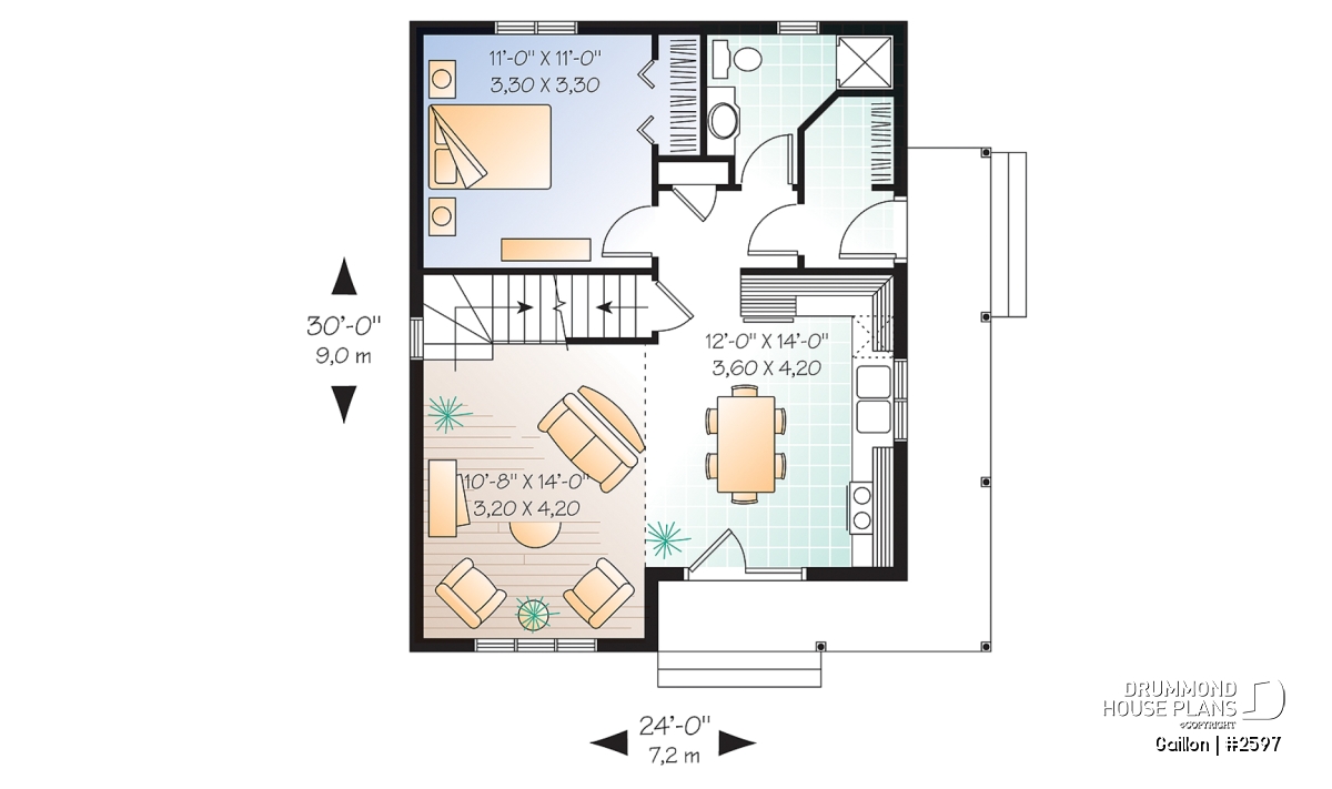 It’s proof—1068 sq. ft. holds a lot of living. The main level showcases cathedral ceilings in the family room; dining/kitchen have French doors to a wide wrap-around porch. A lovely bedroom with shower bath snuggles up to the rear of the home.