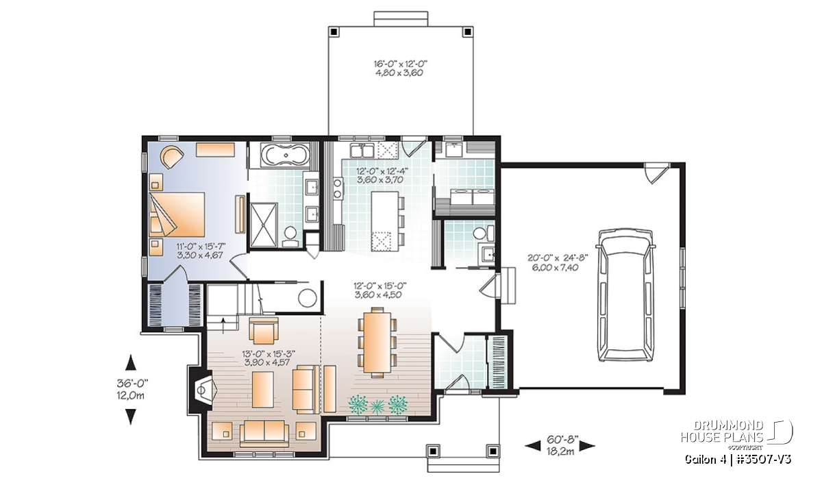 From the beautiful covered veranda through to the entrance foyer, large closet and laundry area on the main floor, no detail has been overlooked in order to enhance the livability of this wonderful design. The double garage is accessible from within the house on this level and the kitchen with its island and access to the 16’ x 12’ covered patio in back, opens out onto a dining room that is large enough for a table that seats 8.