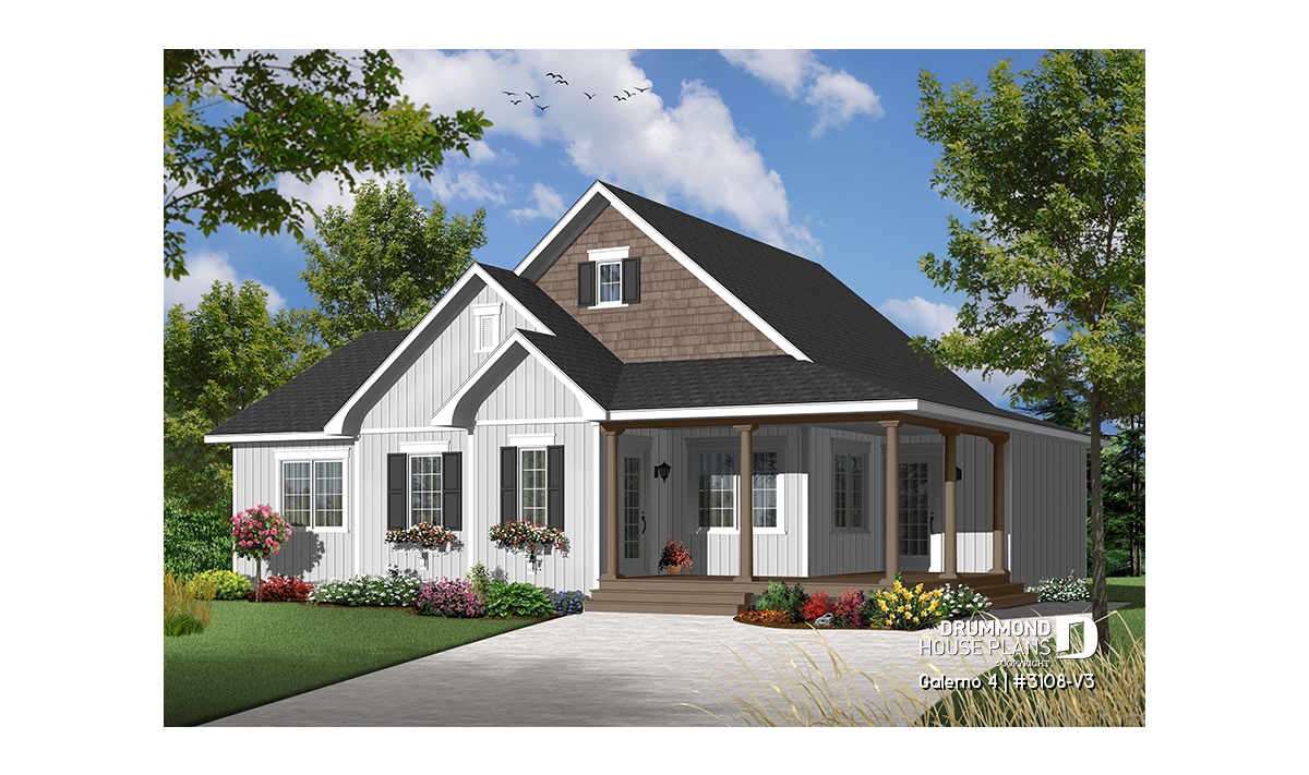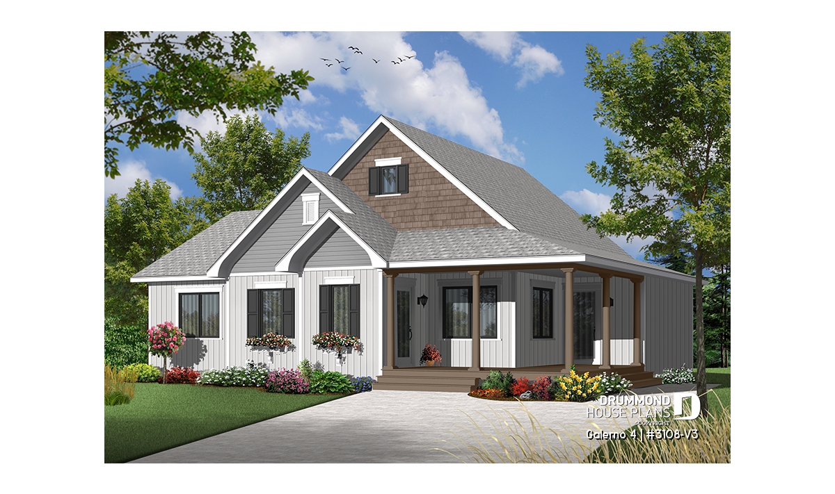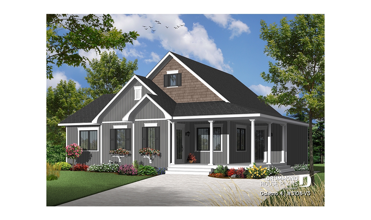Inspired by the 3108 series of plans that features 3108-V1 with its finished basement and 3108-V2 that includes an attached garage, the designer has integrated the most popular features to offer a three bedroom version that is as functional as it is attractive.